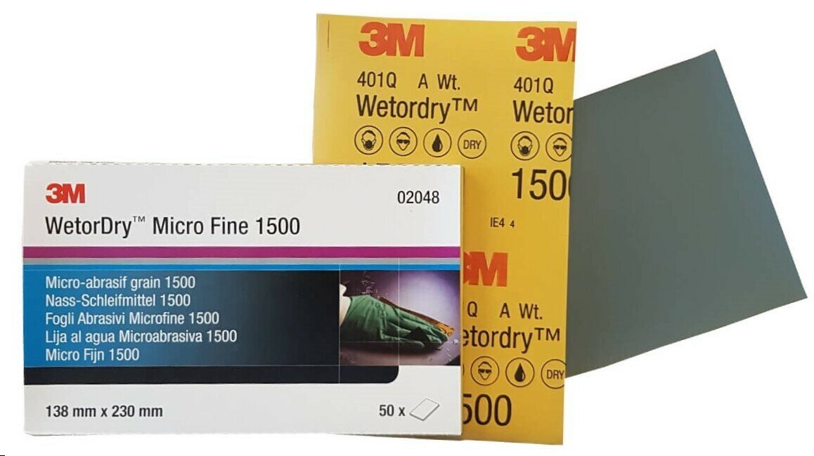 Микротонкий водостойкий абразивный шлифовальный лист 3M™ арт. 02048 Wetordry™ 401Q P1500 (наждачная бумага / наждачка), 138x230 мм, 3 шт.