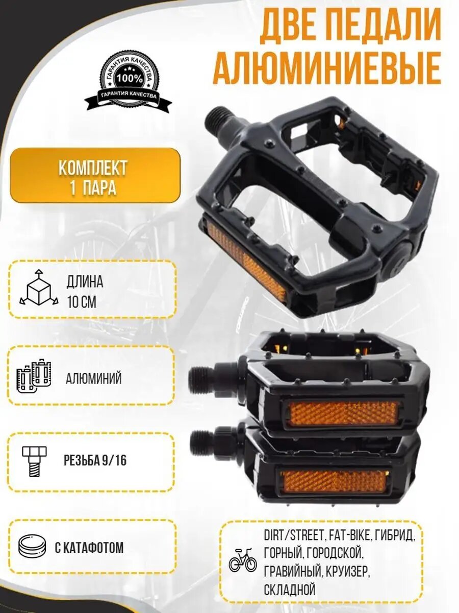 Педали для велосипеда, алюминиевые, широкие MTB, черные с катафотом пара 9/16 2603-51