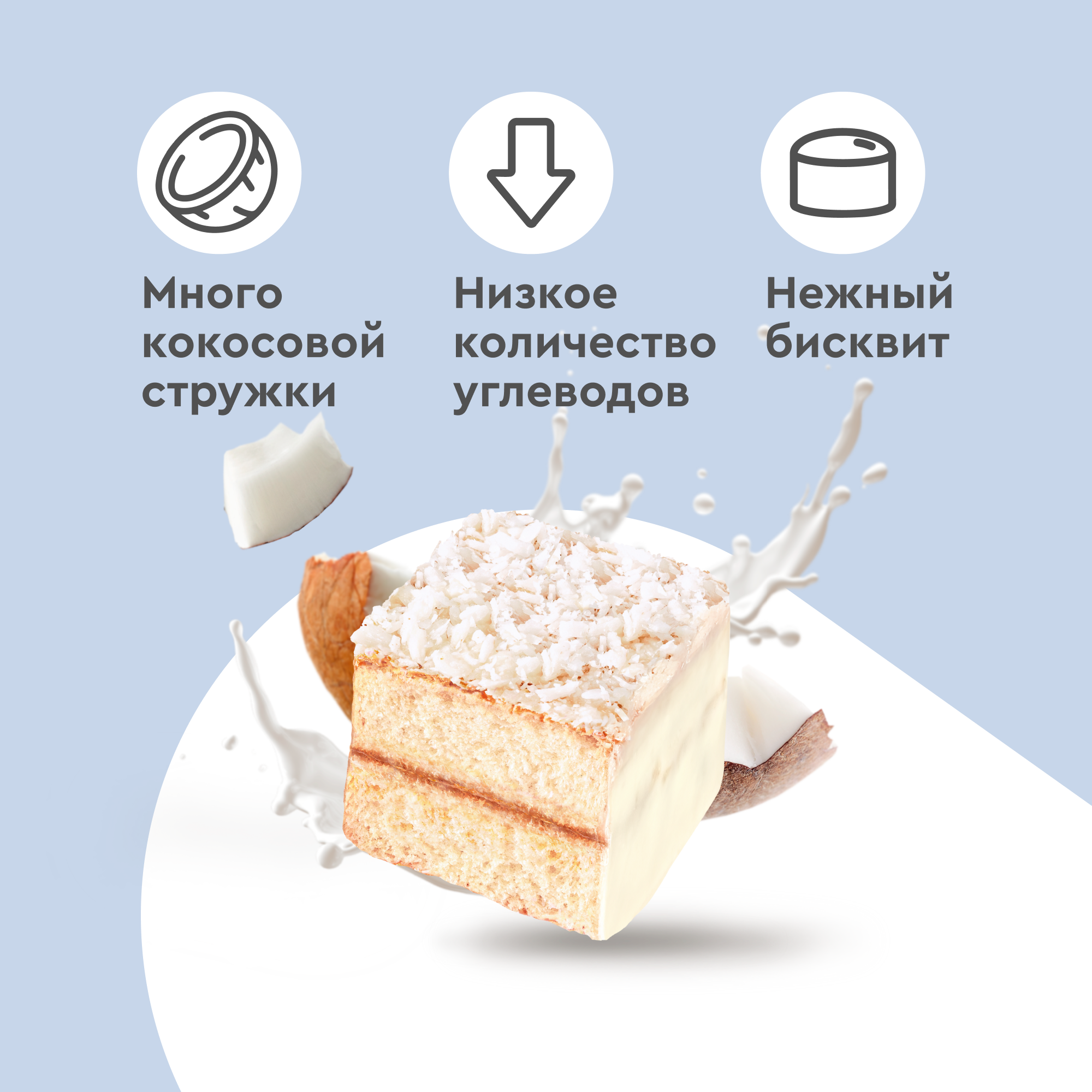 Протеиновые пирожные без сахара ProteinRex Ламингтон Молочный 8 шт х 50 г, 190 ккал, спортивное питание