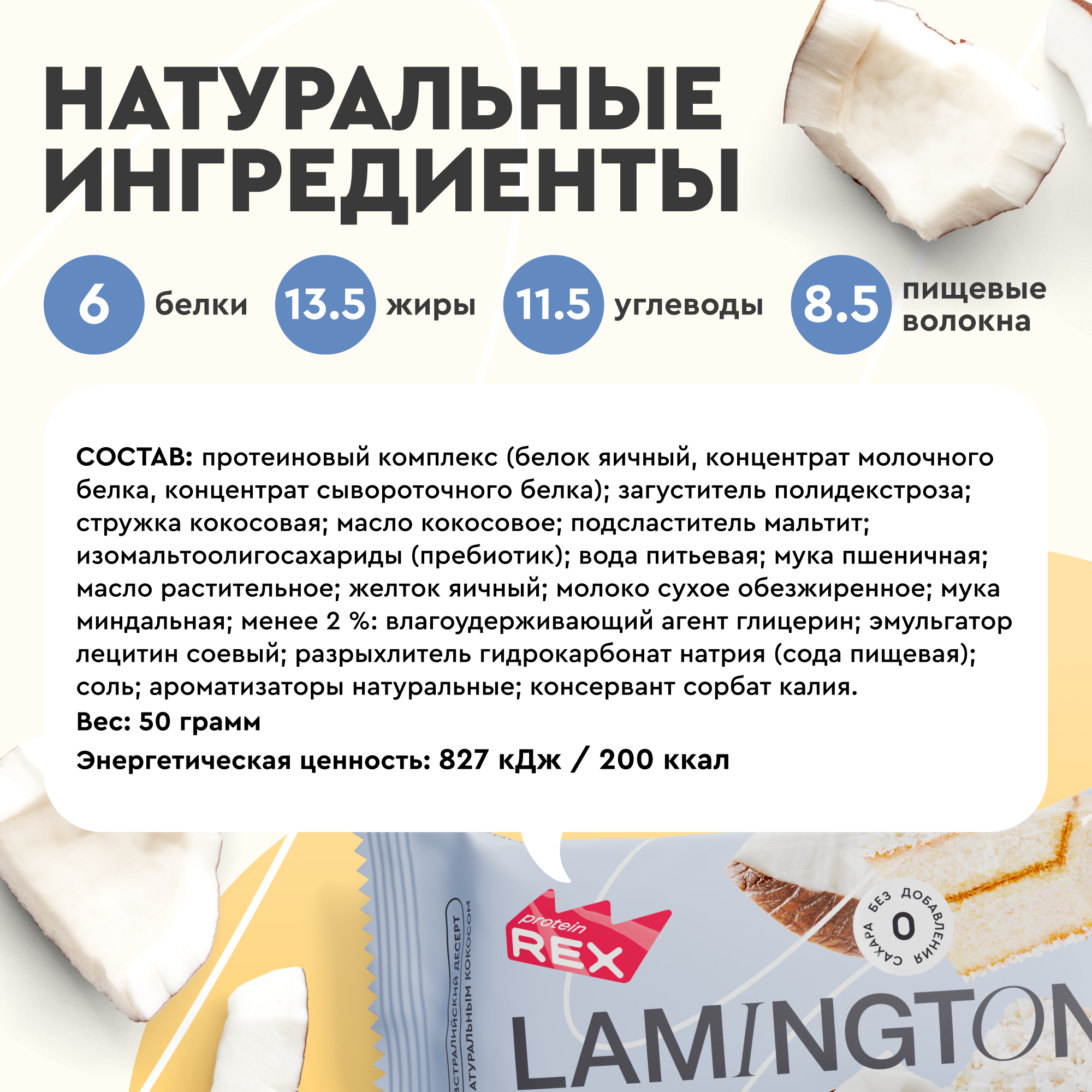 Печенье ProteinRex Lamington, 50 г, milky