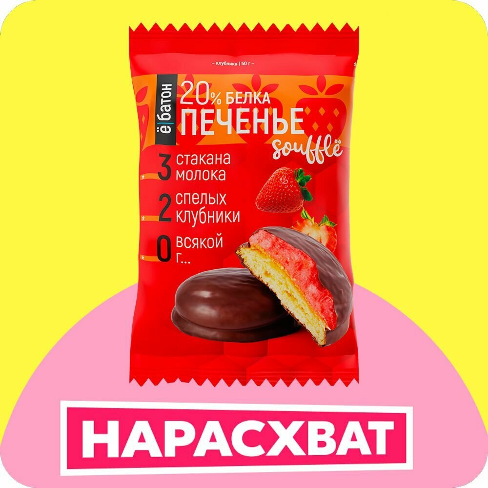 Купить Протеиновое печенье Ёбатон суфле Ё|батон 50г вкус Клубника