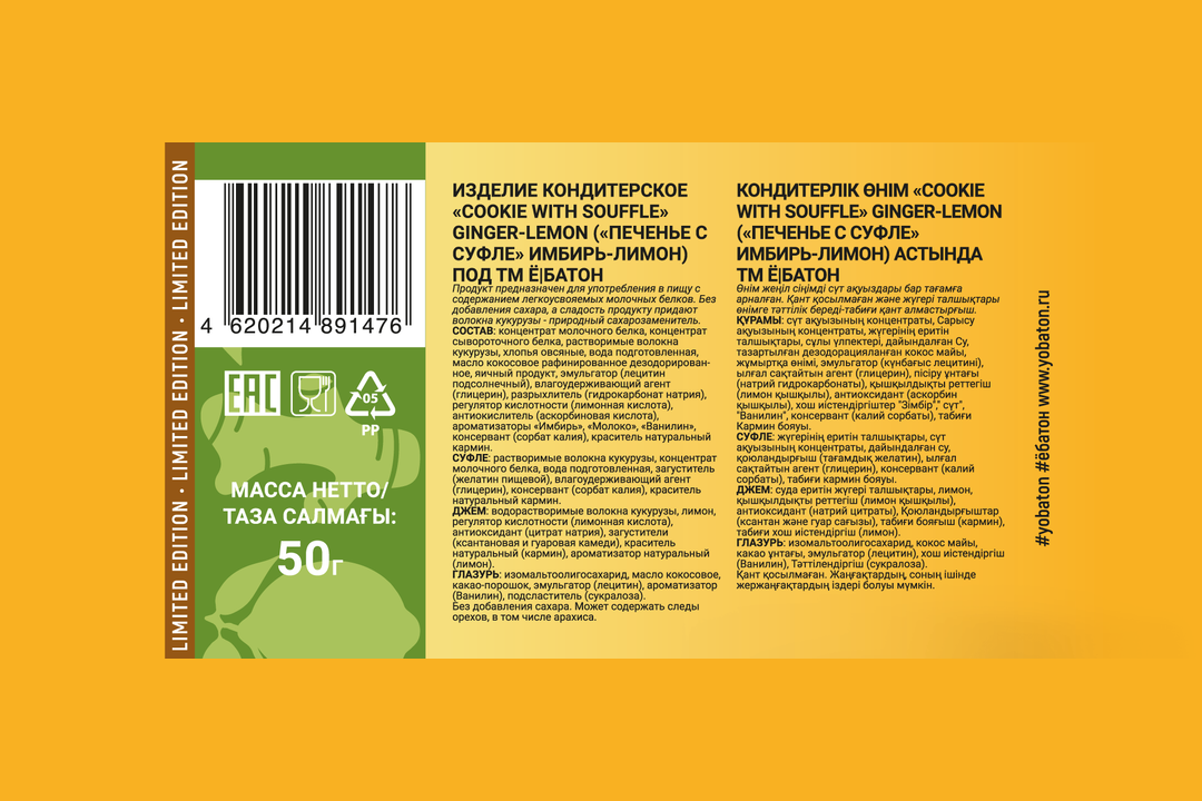 Протеиновое печенье ё|батон с белковым суфле, без сахара и муки Лимон-лайм, 9 шт по 50 г