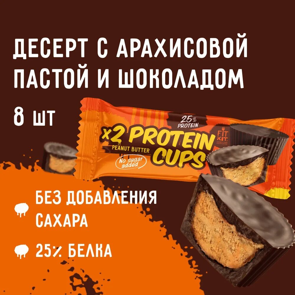Купить Fit Kit, x2 Protein Cups, упаковка 8х70г (Арахисовая паста)