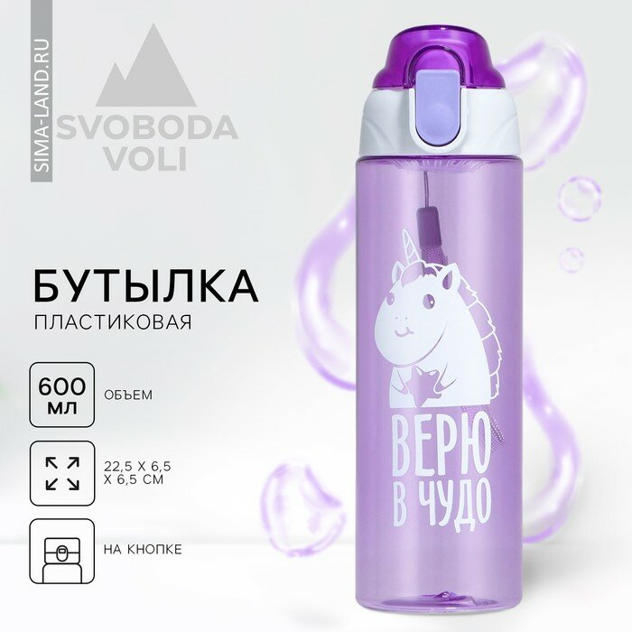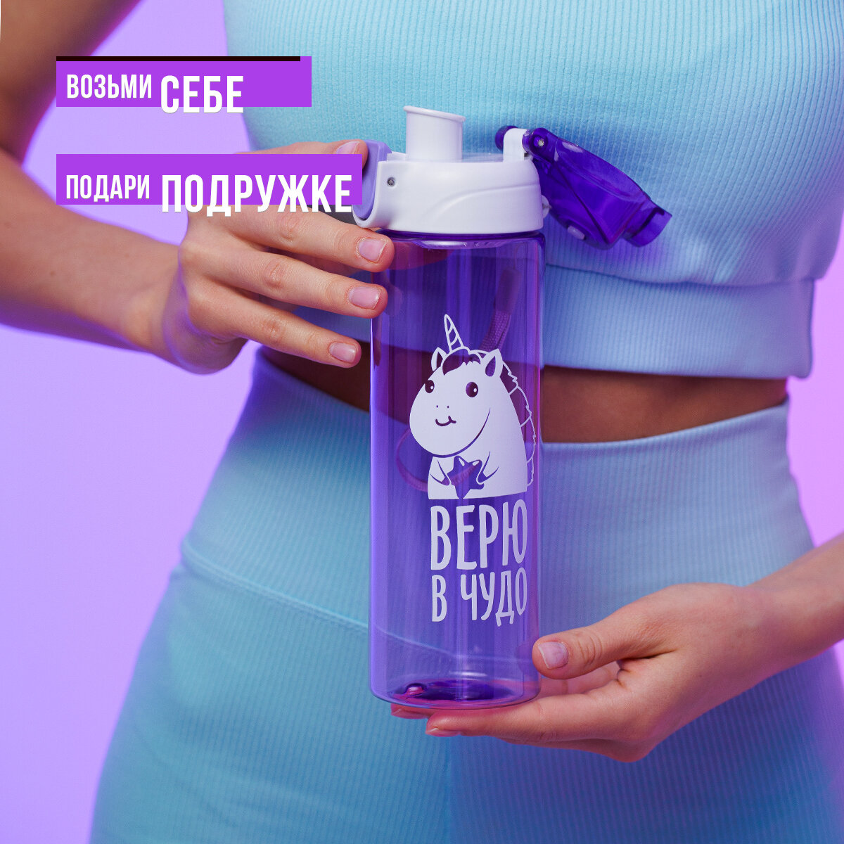 Бутылка для воды спортивная «Верю в чудо», 600 мл, пластик, на подвесе