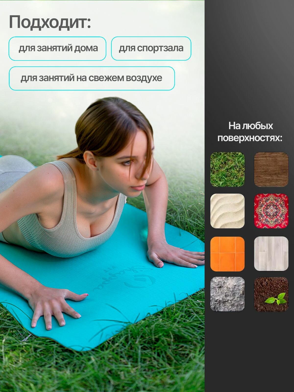 Спортивный тренировочный коврик, Hamsa Yoga, Для йоги и фитнеса с покрытием TPE+TC, Гимнастический инвентарь для фитнеса, Размер 183х61х0.6 см.