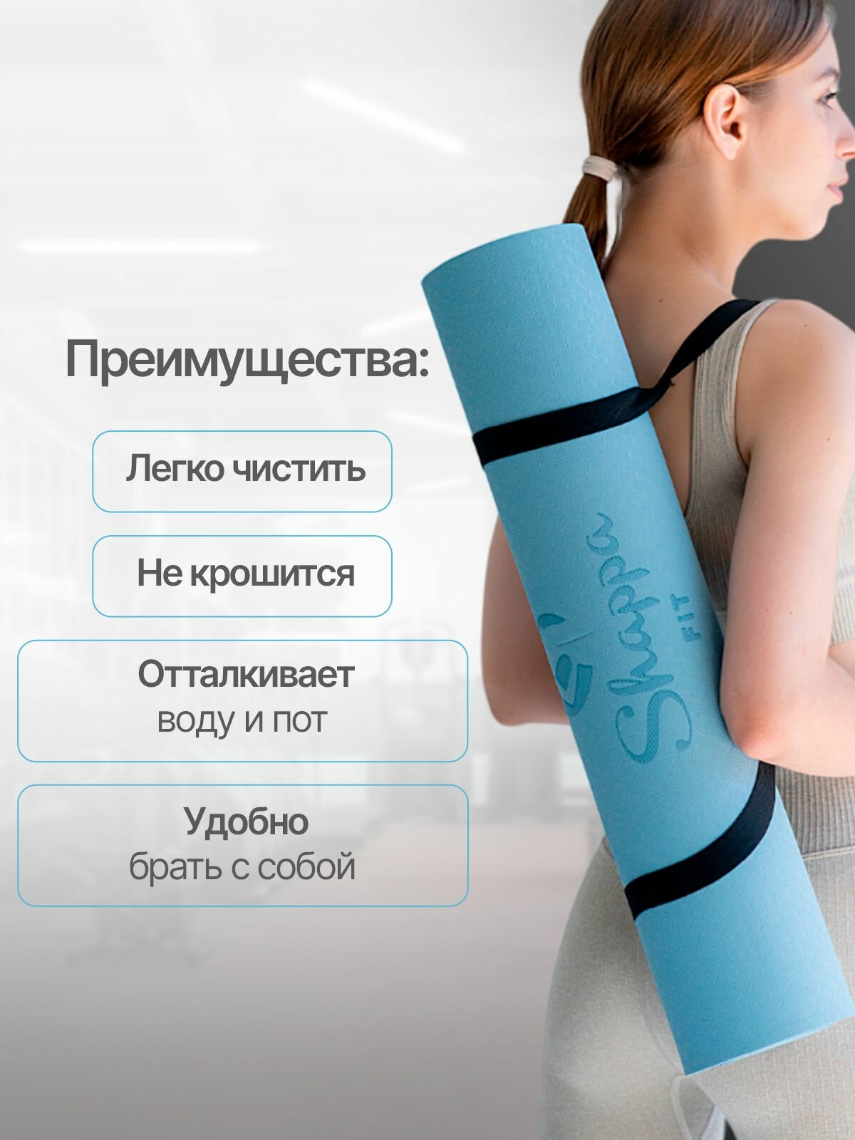 Купить Коврик для йоги и фитнеса Shappa Fit (ТПЭ 183х61х6см ) , цвет сине-голубой, с лямками для переноса , коврик для фитнеса