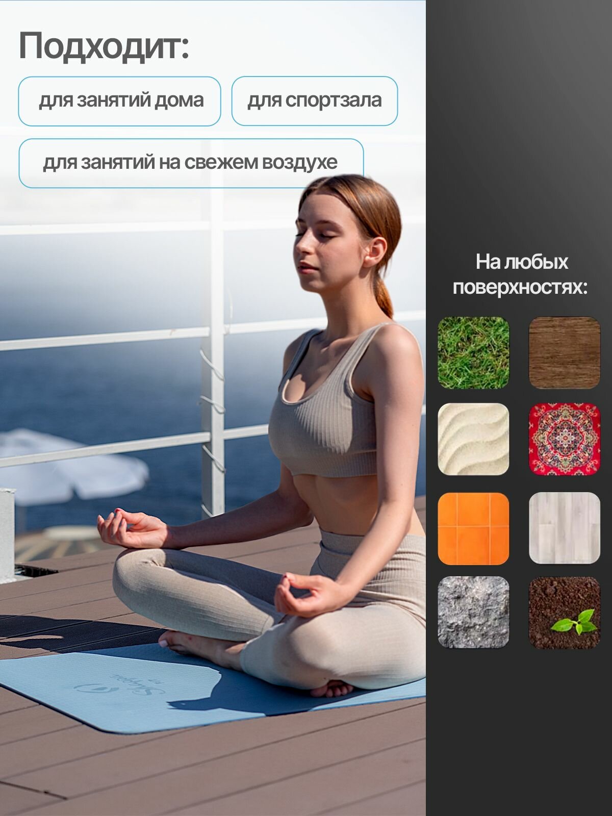 Спортивный тренировочный коврик, Hamsa Yoga, Для йоги и фитнеса с покрытием TPE+TC, Гимнастический инвентарь для фитнеса, Размер 183х61х0.6 см.