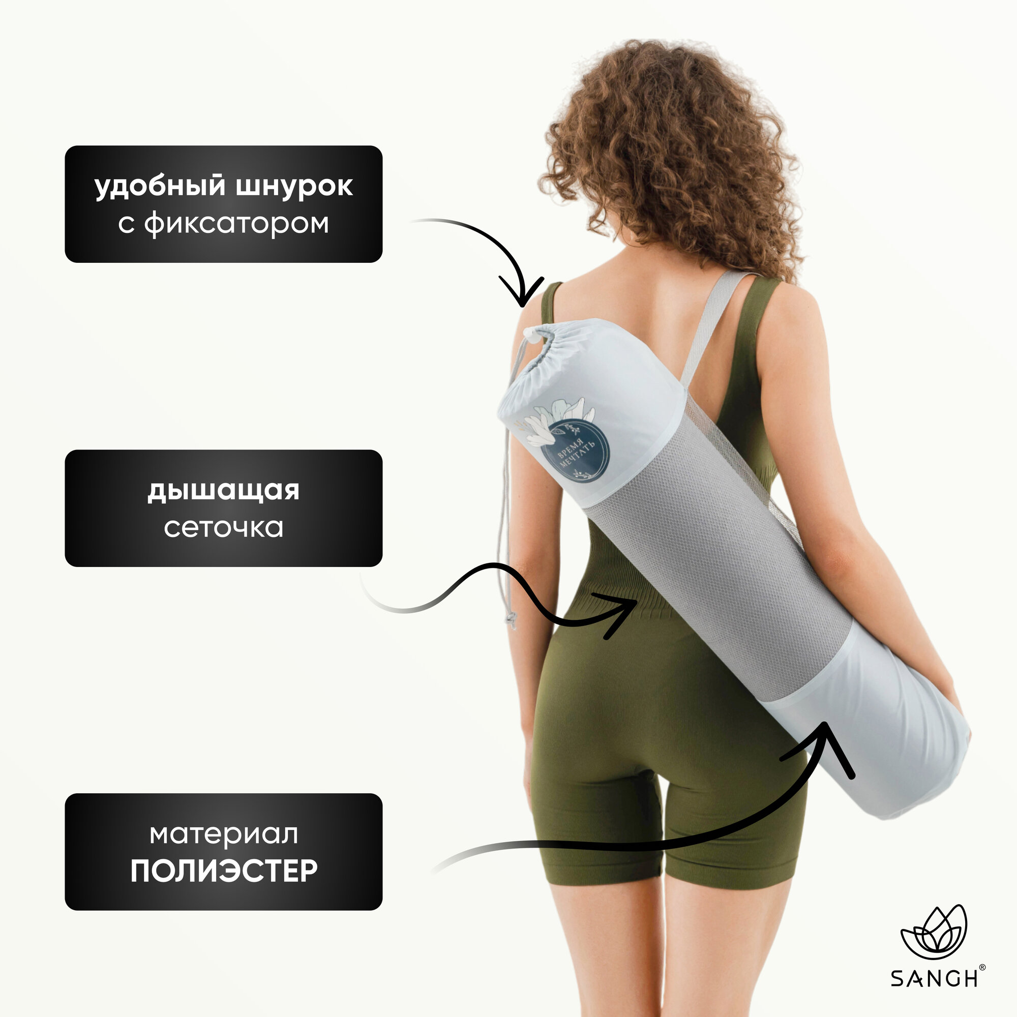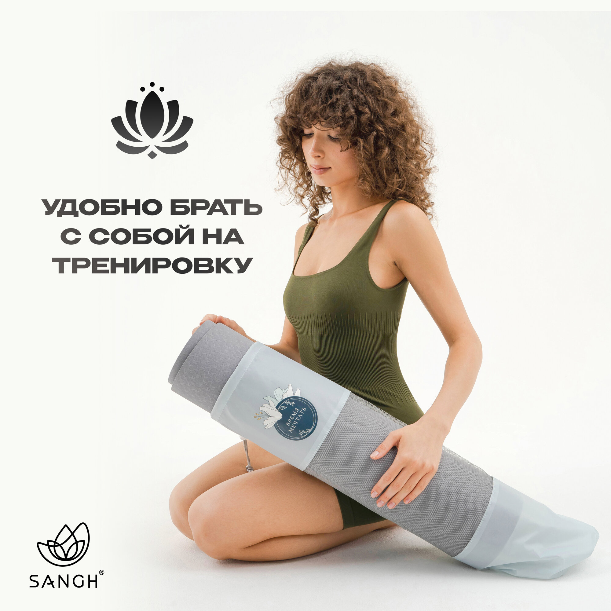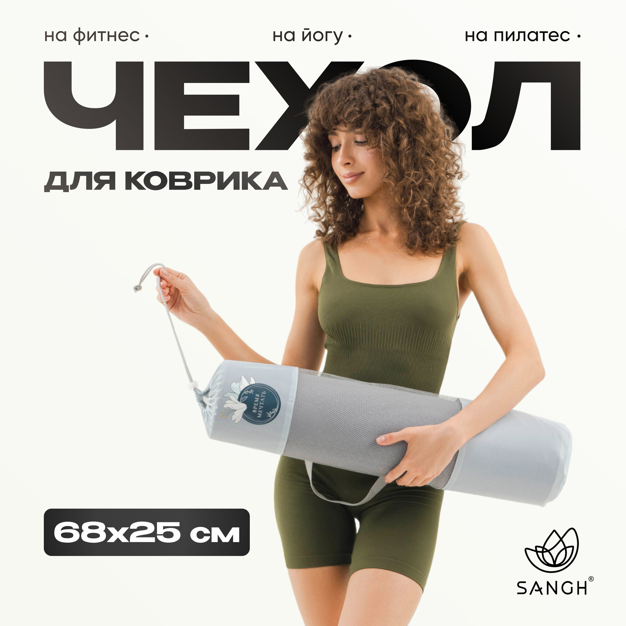 Чехол для йога - коврика Sangh "Цветок", цвет серый