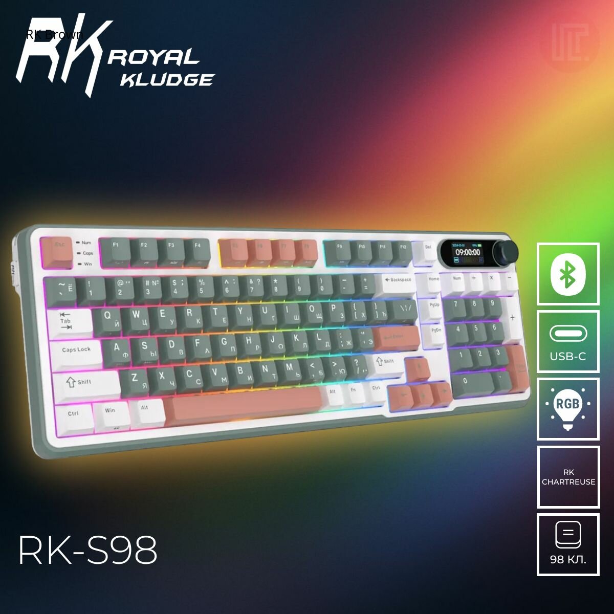 Клавиатура Royal Kludge RK-S98 Blackberry (USB/2.4 GHz/Bluetoоth, RGB, Hot Swap, Chartreuse switch)