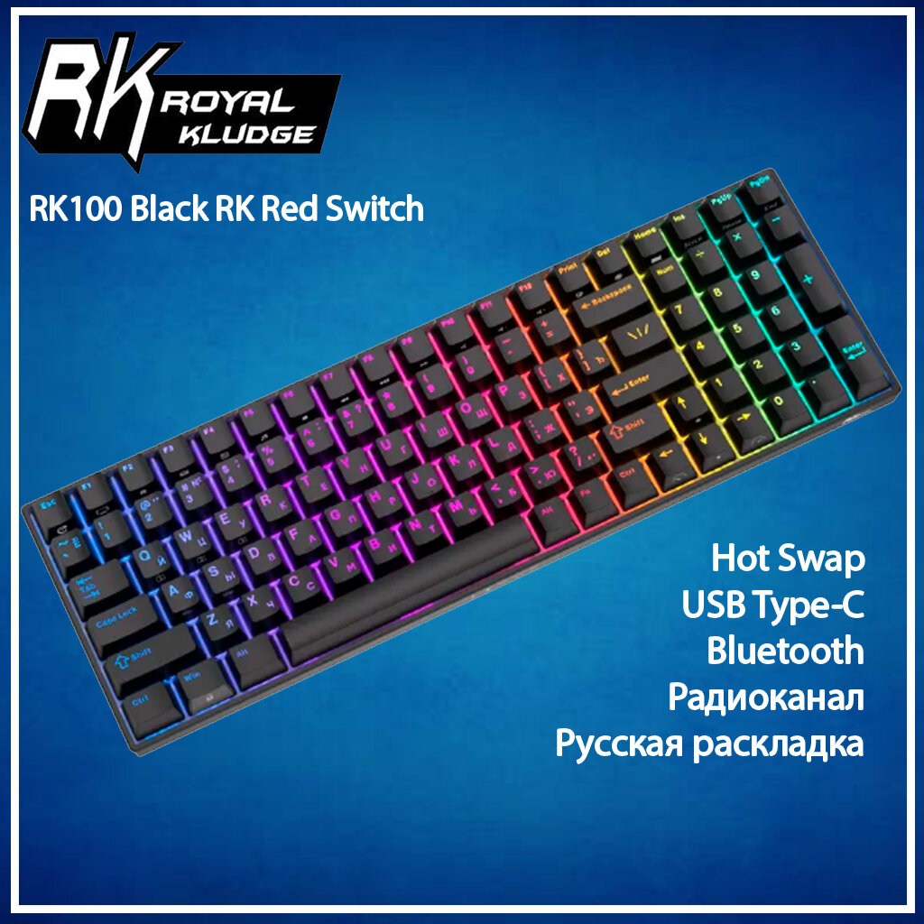 Беспроводная клавиатура Royal Kludge RK100 Black (USB/2.4 GHz/Bluetooth, RGB, Hot Swap, Red switch)