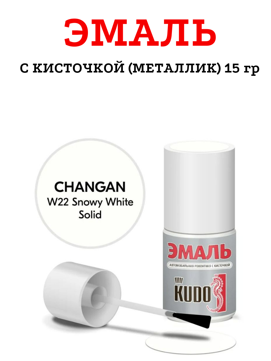 Эмаль автомобильная с кисточкой KUDO CHANGAN W22 SNOWY WHITE SOLID 15 гр Ku-74401