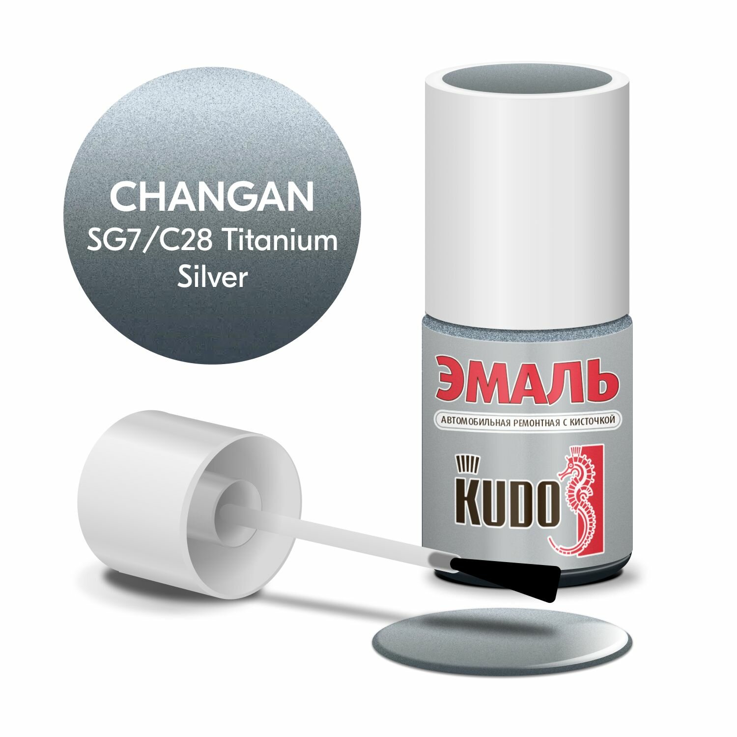 Купить Эмаль автомобильная ремонтная с кисточкой CHANGAN SG7/C28 TITANIUM SILVER (металлик) 15 мл KUDO KU74404