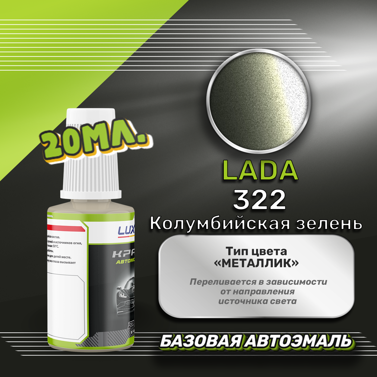 Купить Luxfore автоэмаль базовая LADA 322 Колумбийская зелень подкраска 20 мл.
