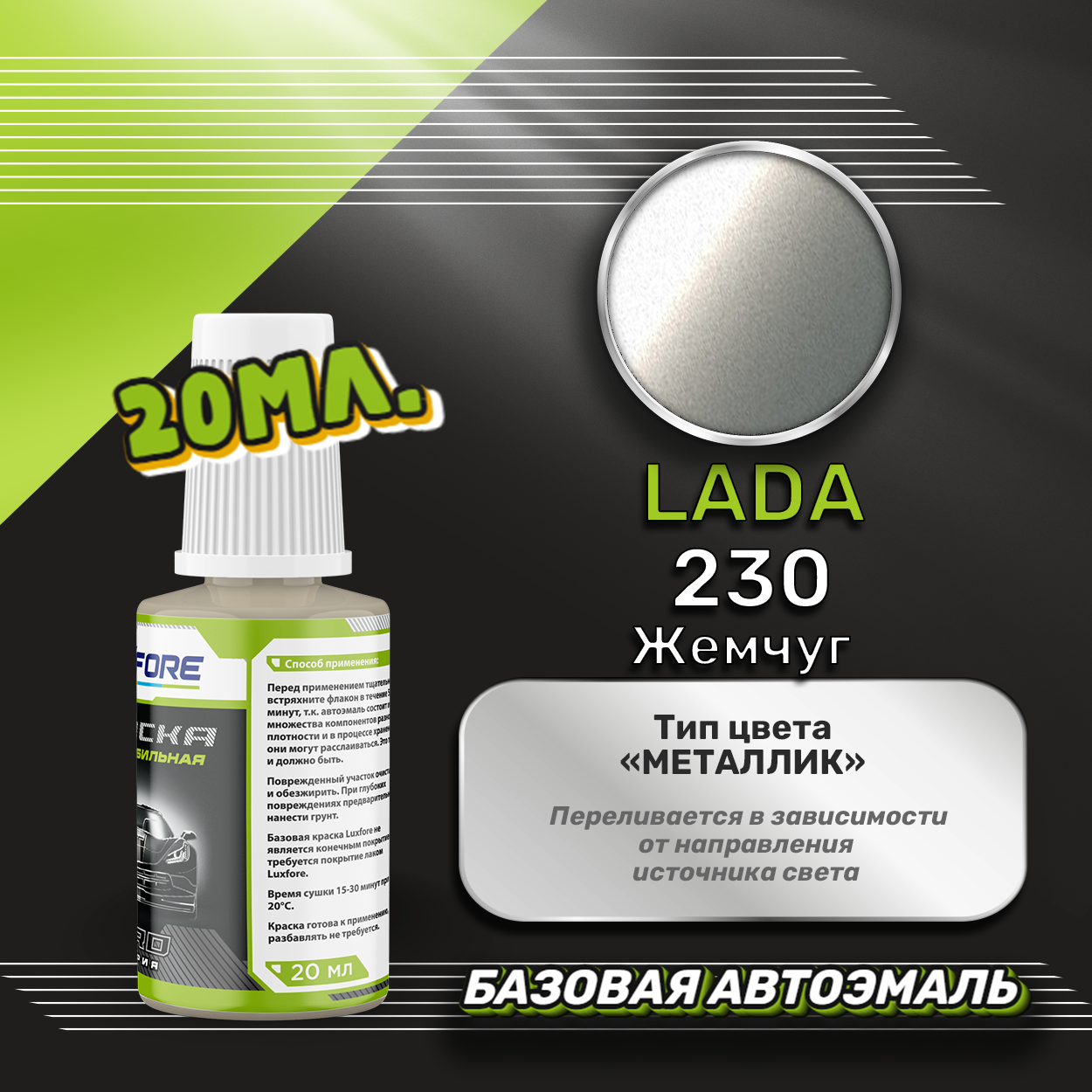 Купить Luxfore автоэмаль базовая LADA 230 Жемчуг подкраска 20 мл.