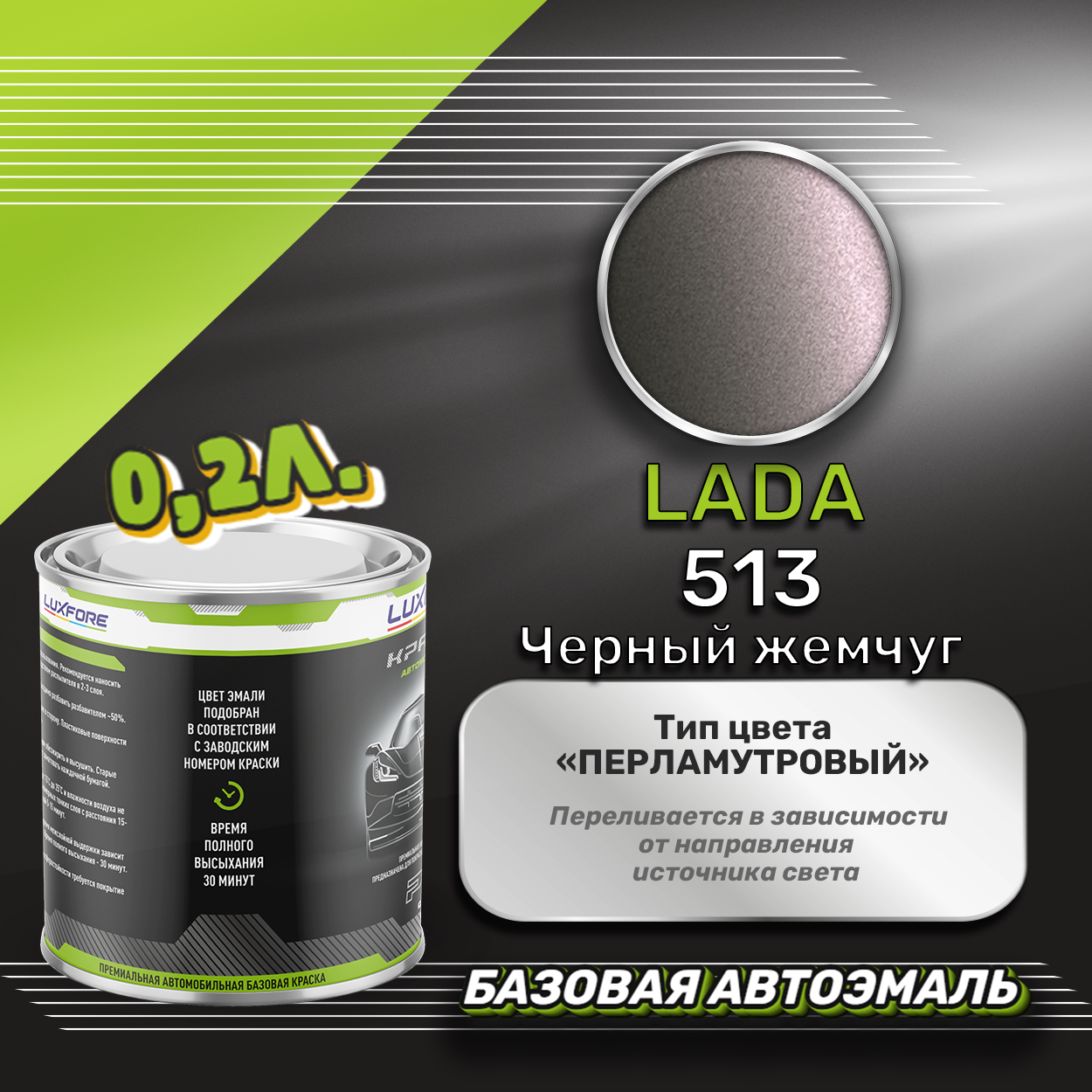 Купить Luxfore краска базовая эмаль LADA 513 Черный жемчуг 200 мл
