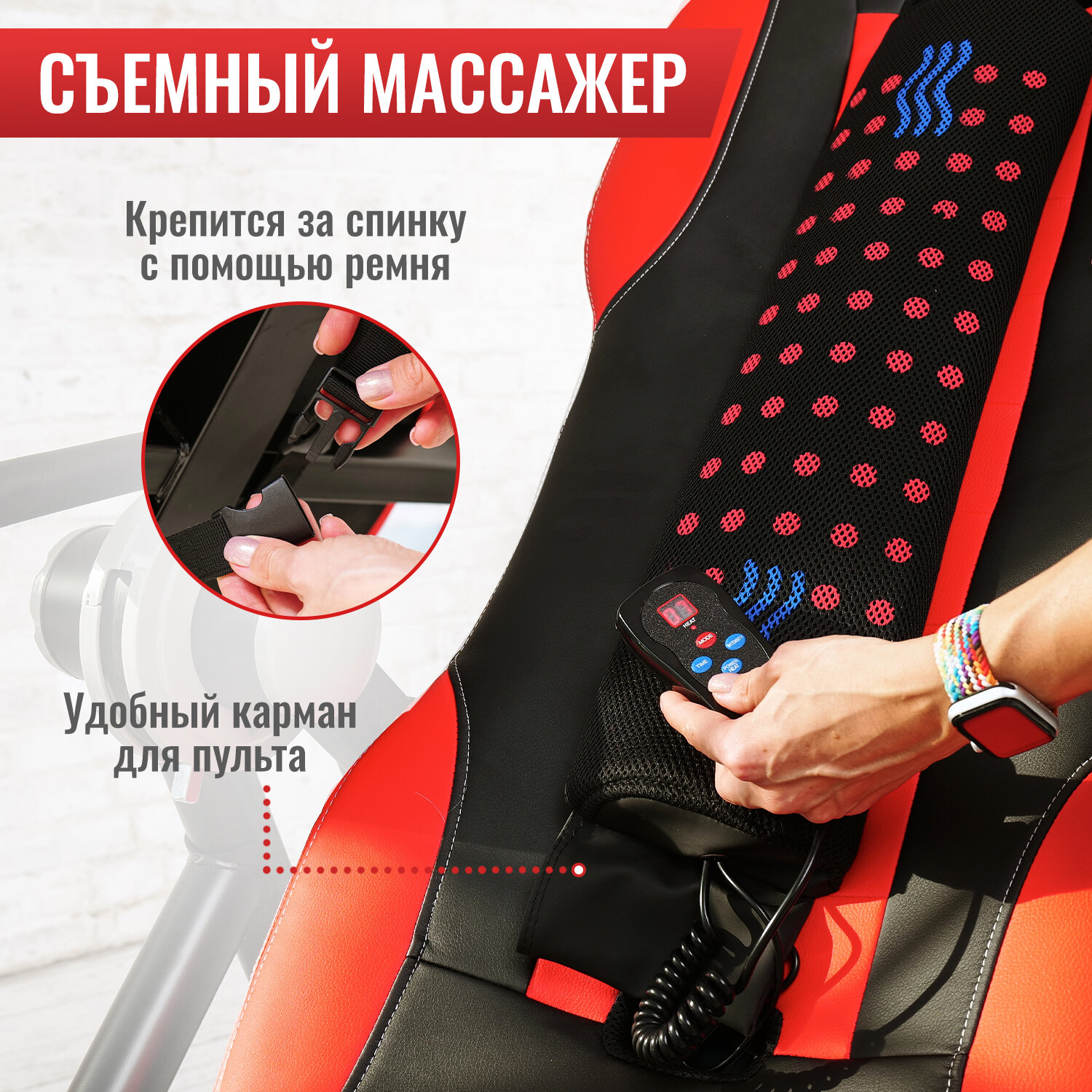 | Особенности | массаж спины / подогрев / регулировка под голеностоп / регулировка под рост / регулировка угла наклона / ремень безопасности / складная конструкция |