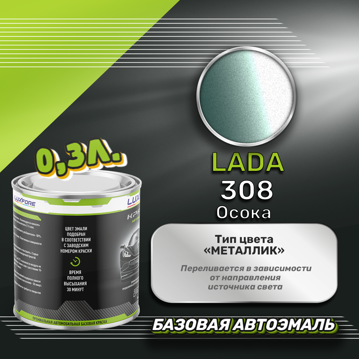 Купить Luxfore краска базовая эмаль LADA 308 Осока 300 мл