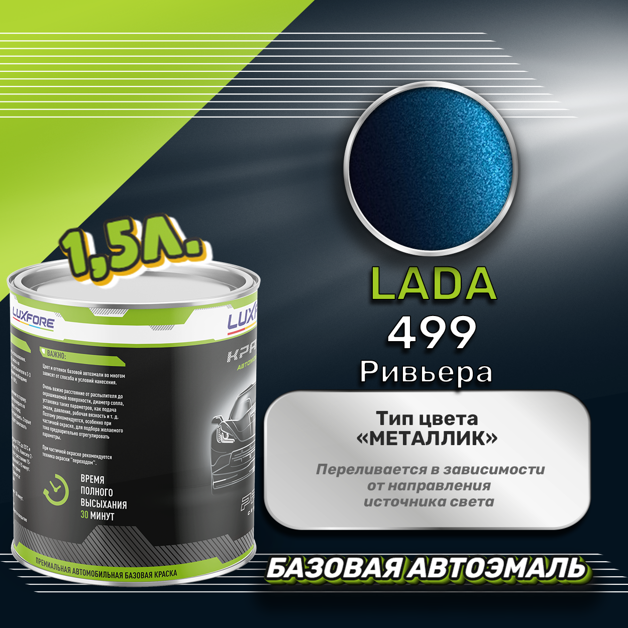 Купить Luxfore краска базовая эмаль LADA 499 Ривьера 1500 мл