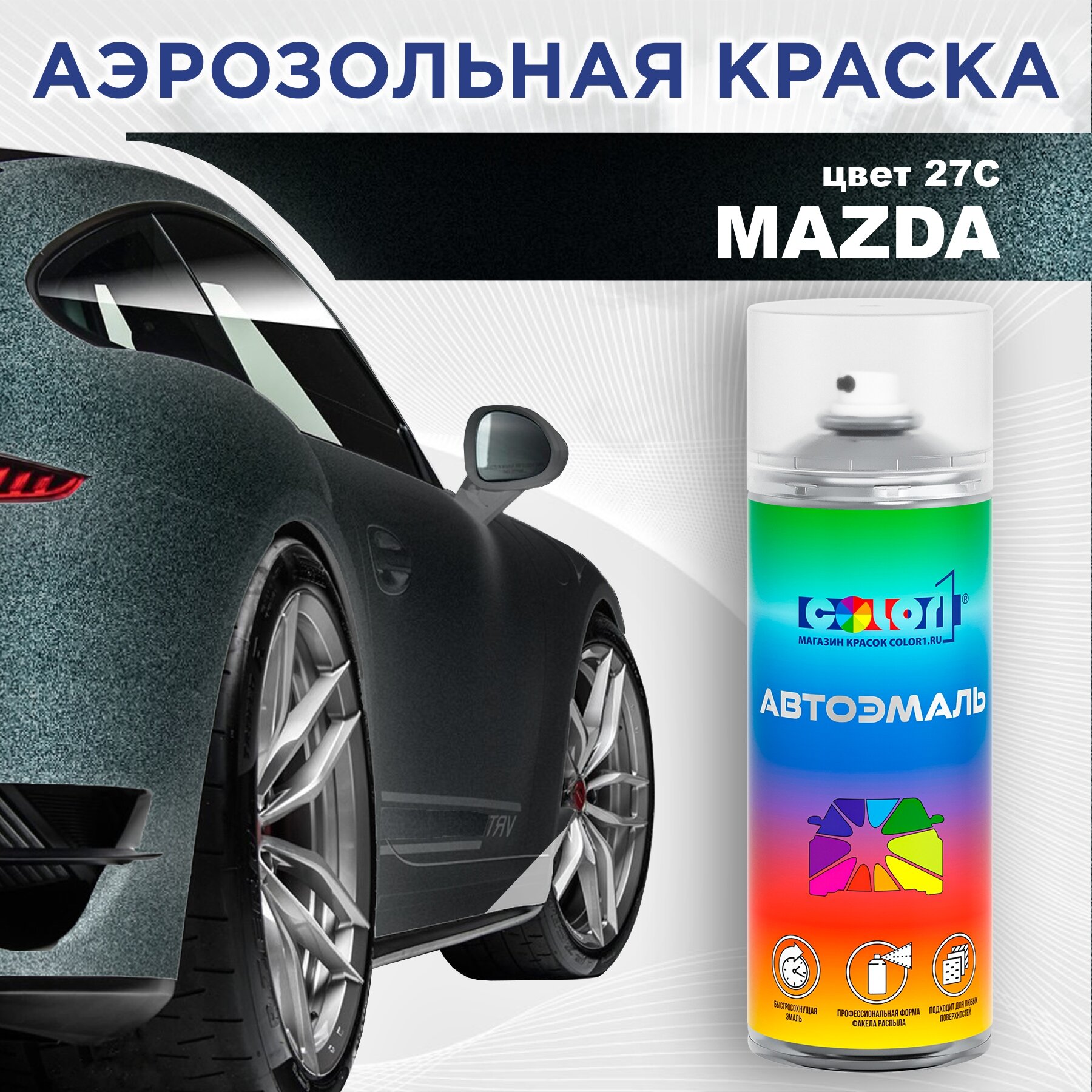 Аэрозольная краска COLOR1 для MAZDA, цвет 27C - NORDIC GREEN