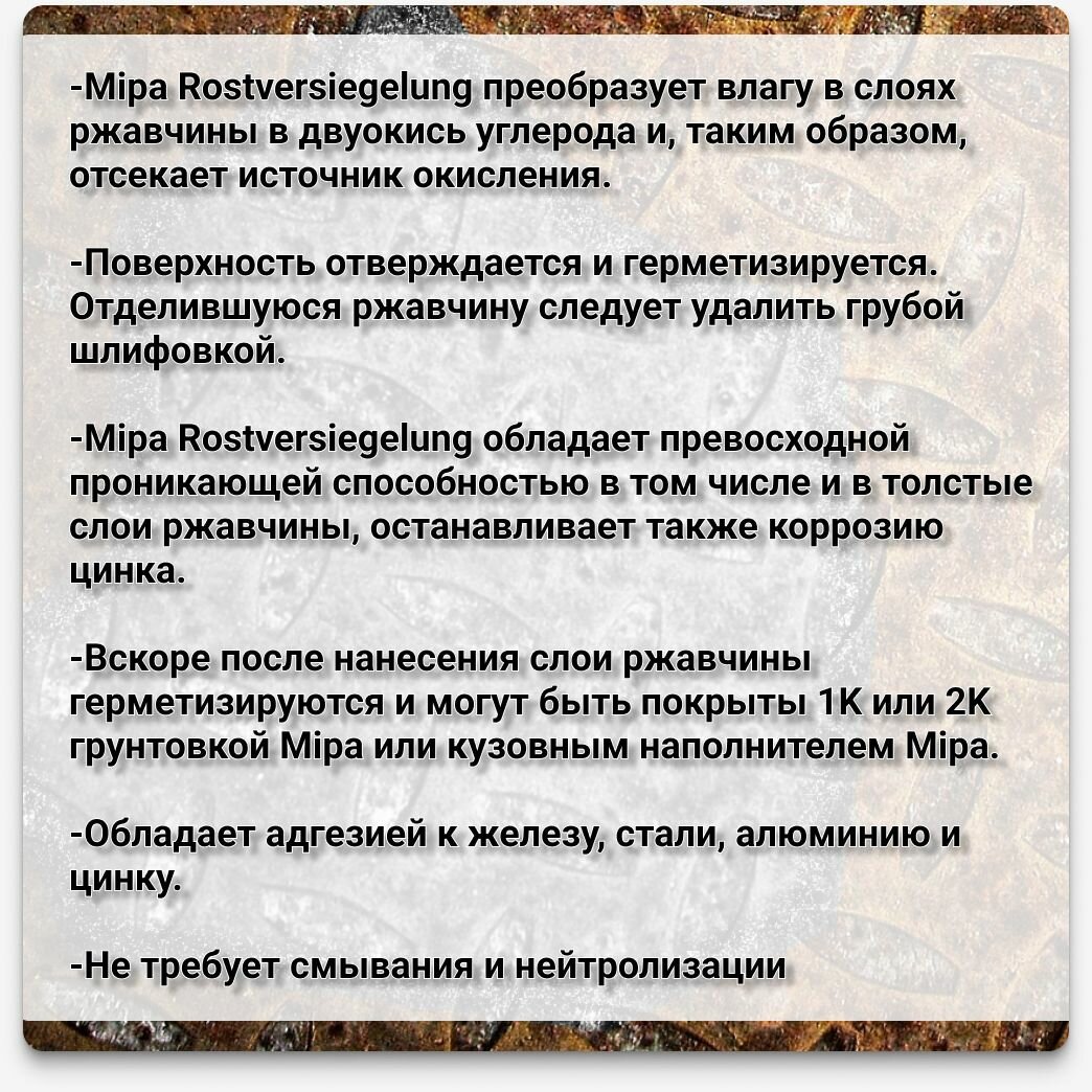 Запечатыватель ржавчины Mipa Rostversiegelung (преобразователь) 100 мл. интересное: