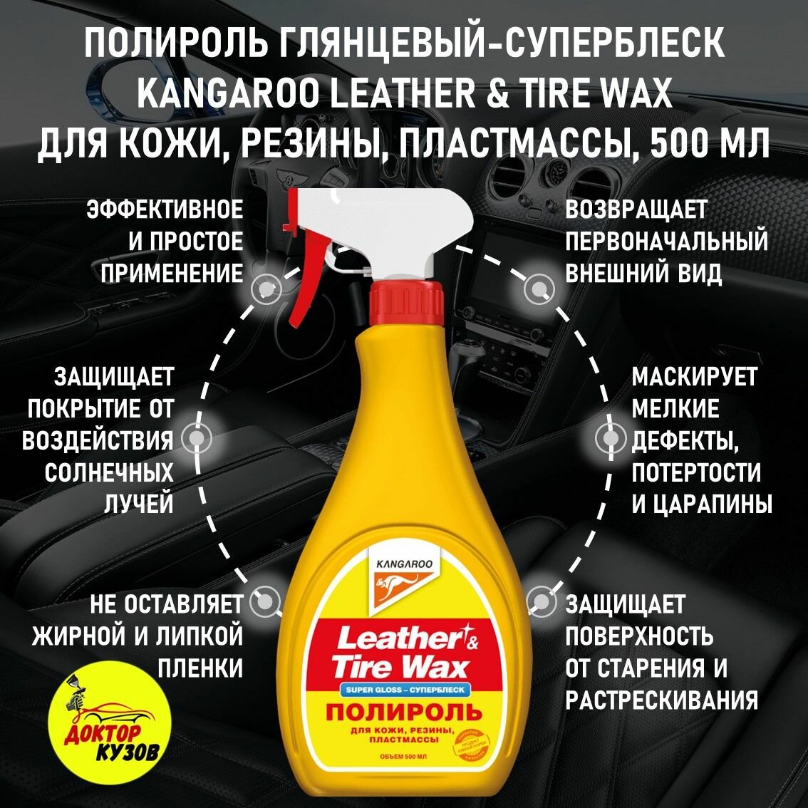 Полироль для пластика авто / Полироль глянцевый KANGAROO универсальный (для кожи, резины, пластмассы), 500 мл
