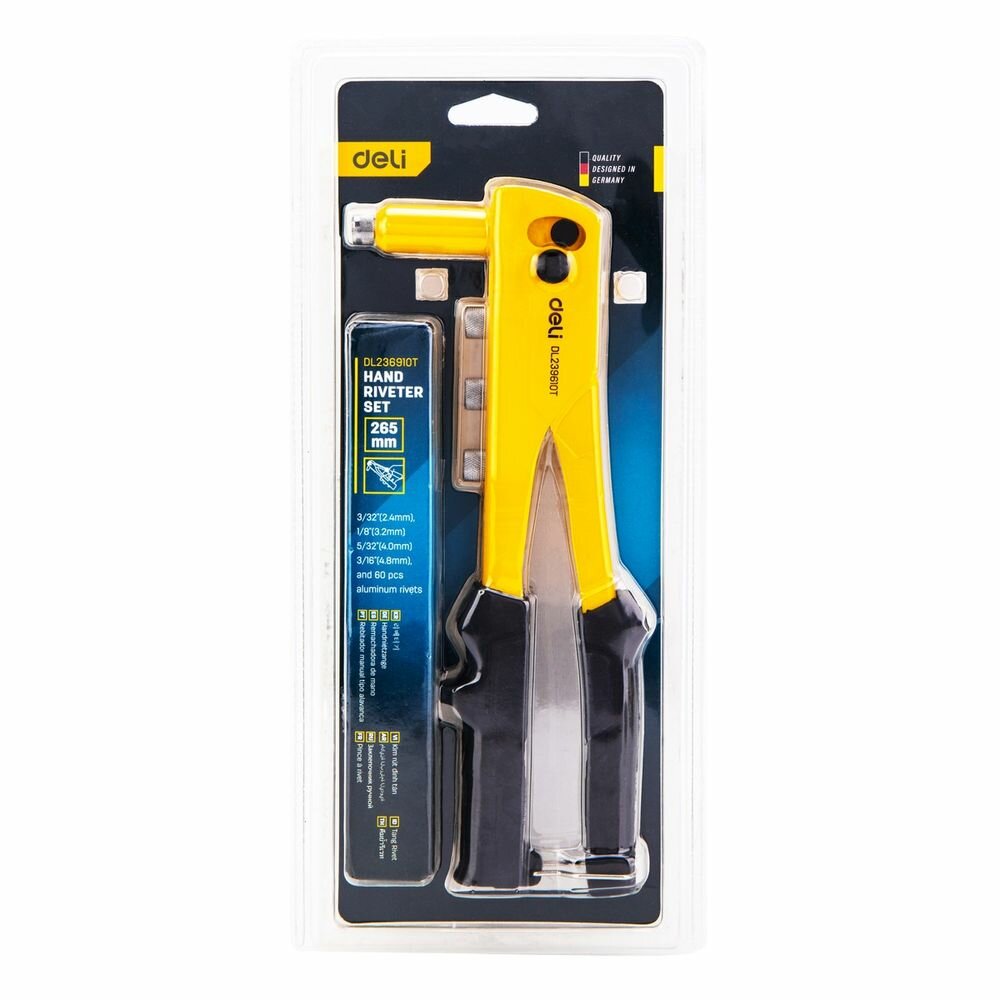 Заклепочник ручной Deli DL236910T 10,5" + 60 шт заклепок Материал: 20Cr. 265 мм. Носовая часть: 2,4–