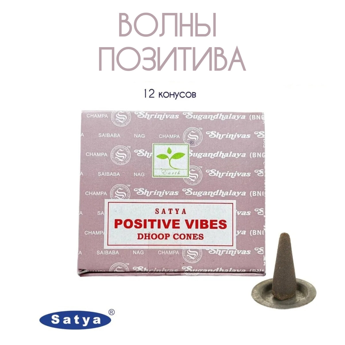 СохранитьSatya Волны добра - 12 шт, ароматические благовония, конусовидные, конусы с подставкой, Positive Vibe - Сатия, Сатья интересное: