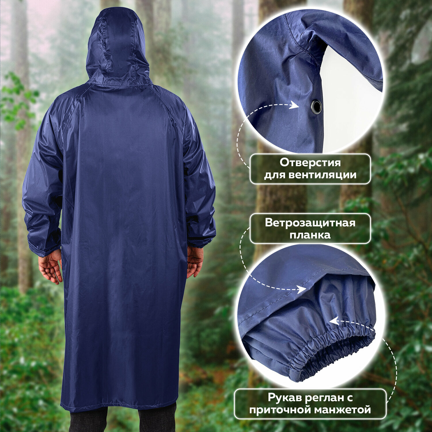 Плащ-дождевик синий на молнии многоразовый с ПВХ-покрытием, размер 60-62 (XXXL), рост 170-176, грандмастер, 610868