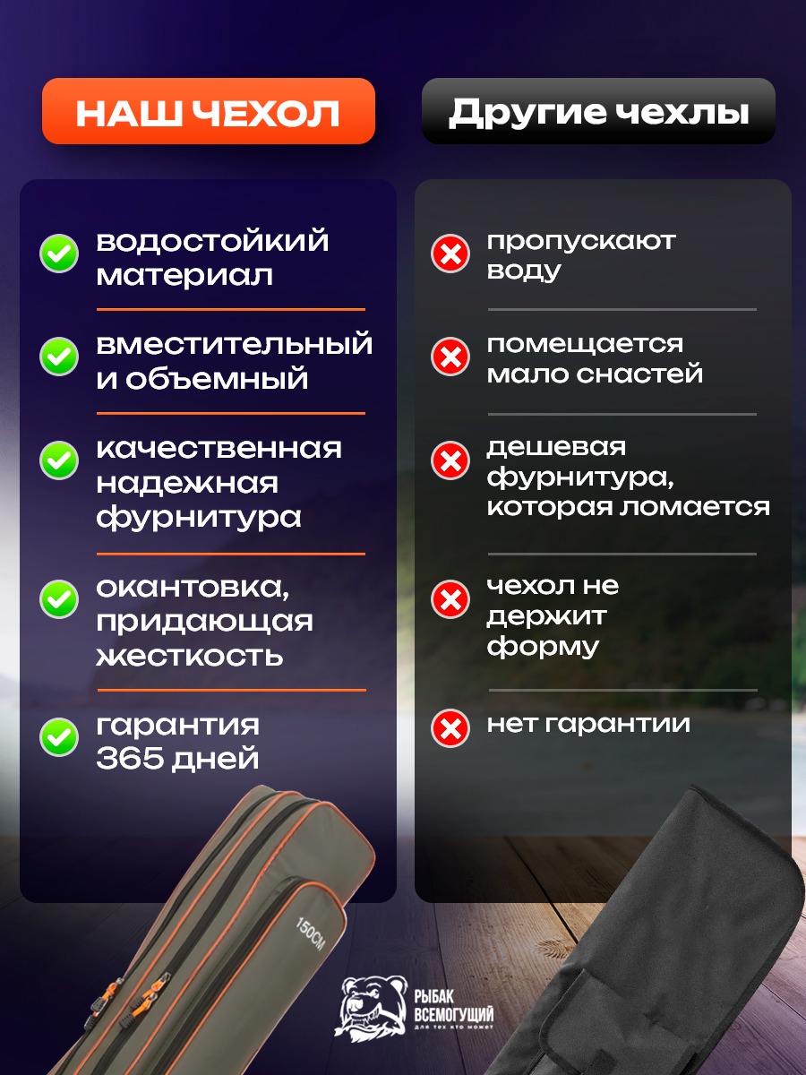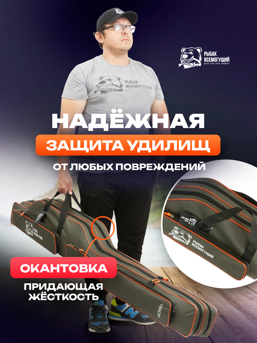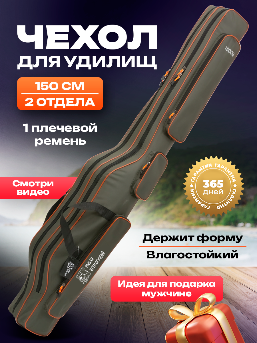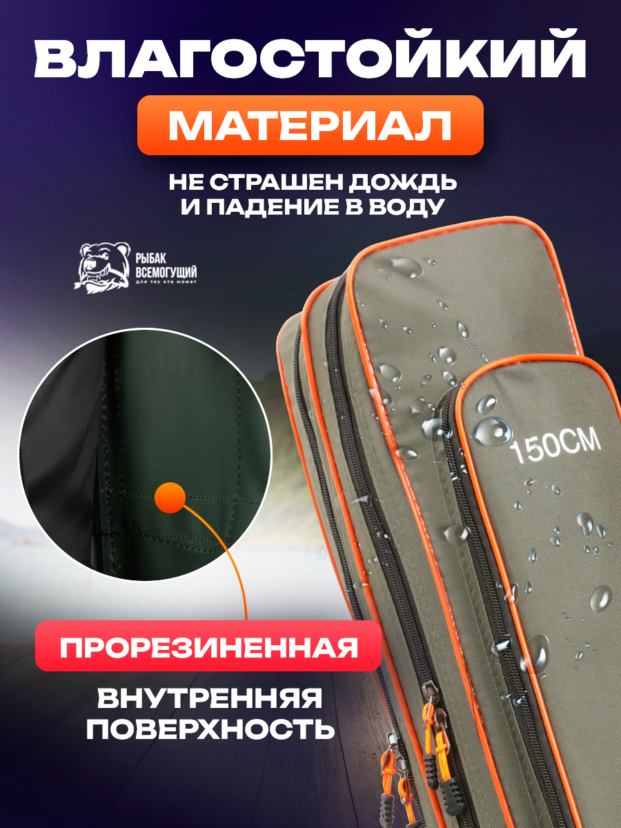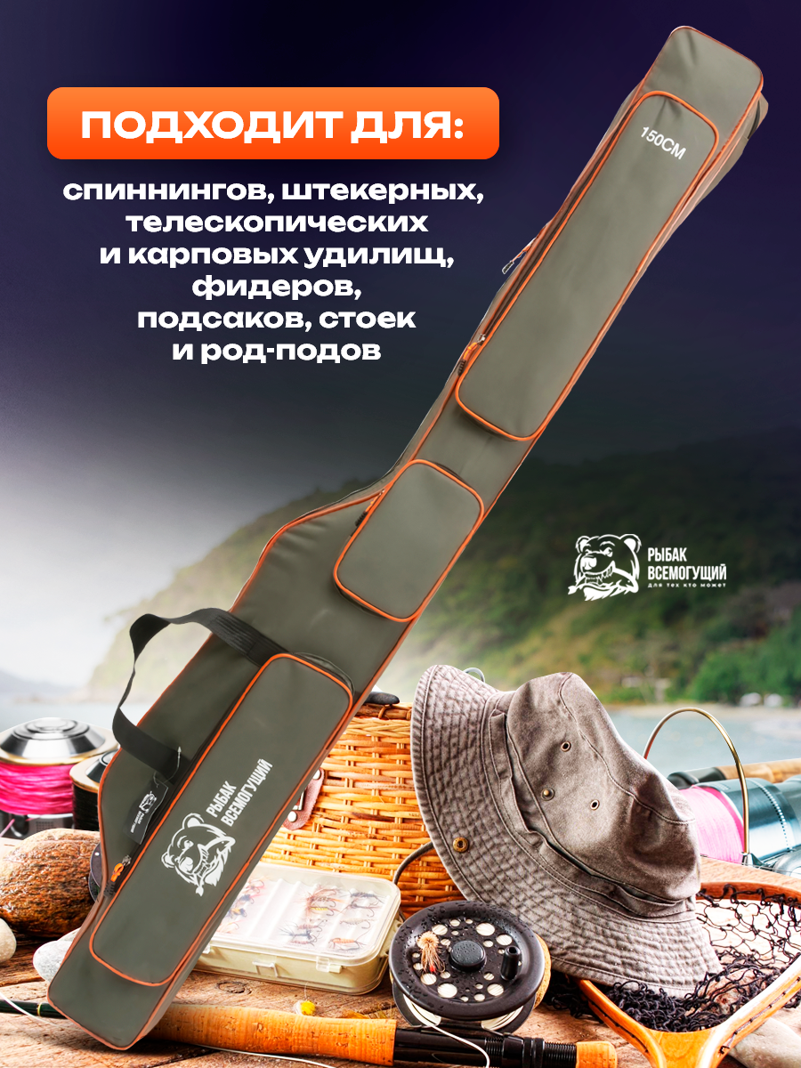Чехол для удочек, спиннингов, удилищ 150 см 2 отделения интересное: