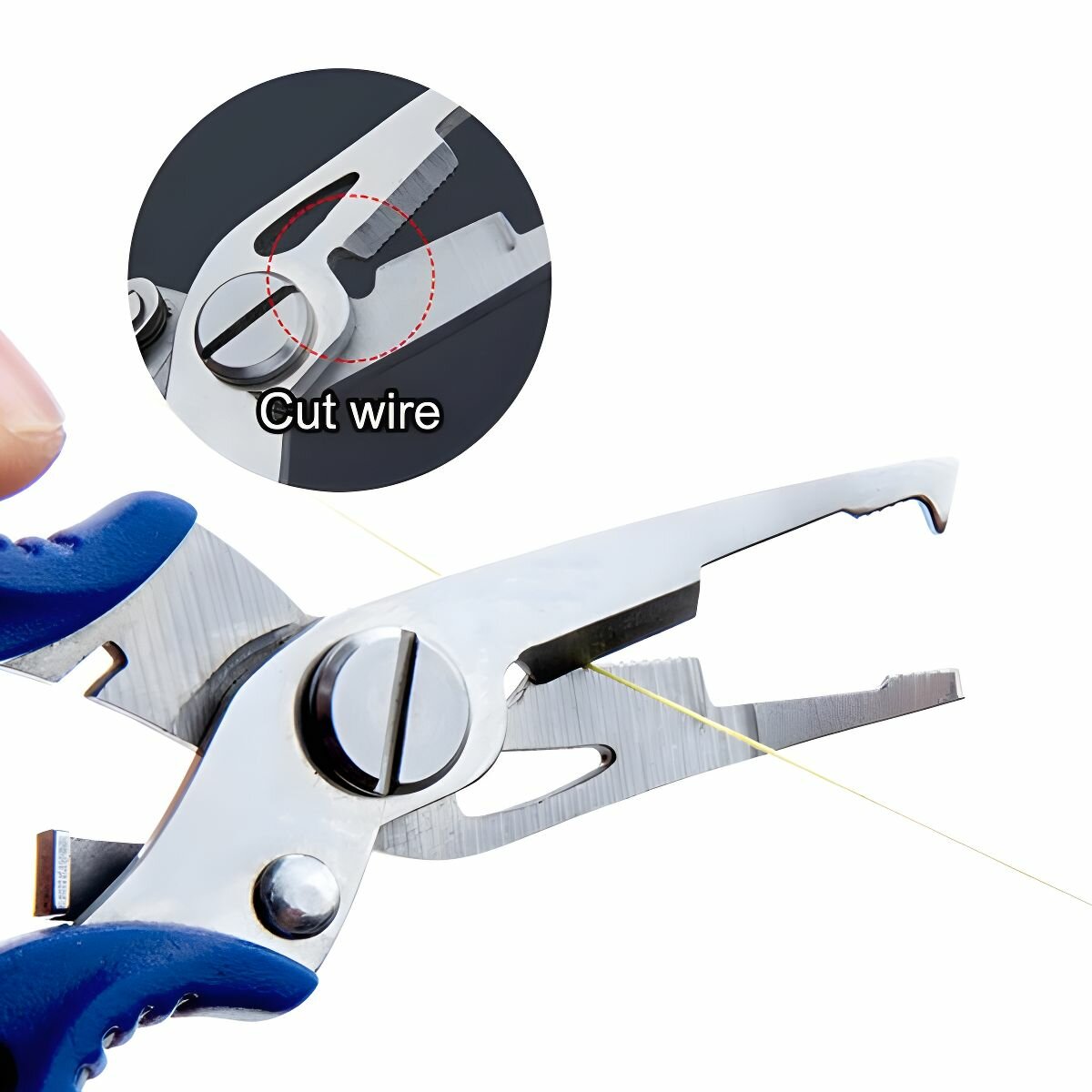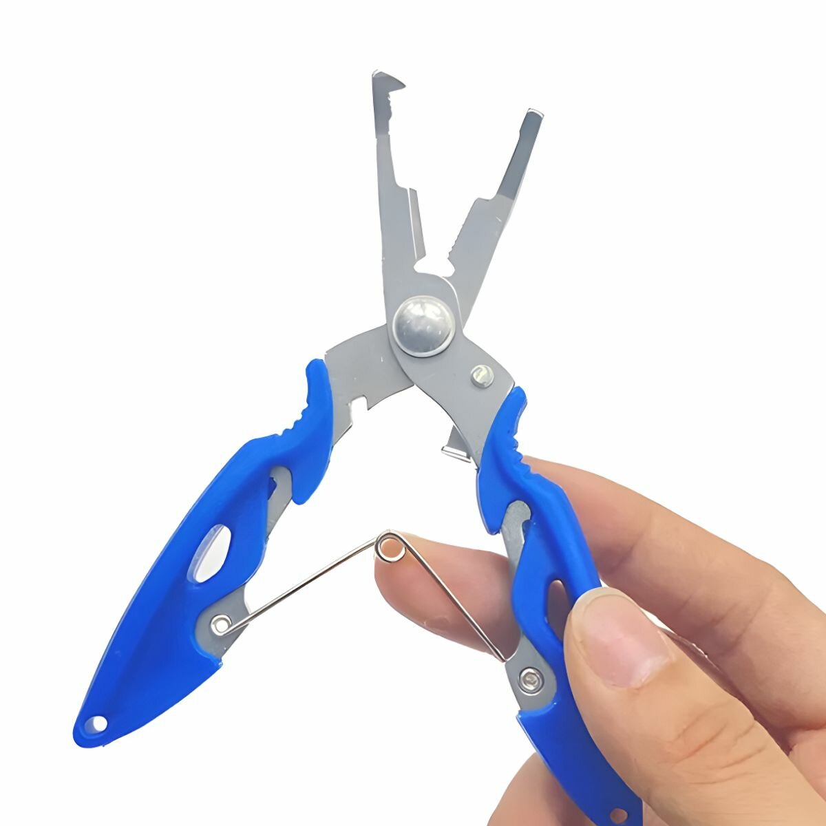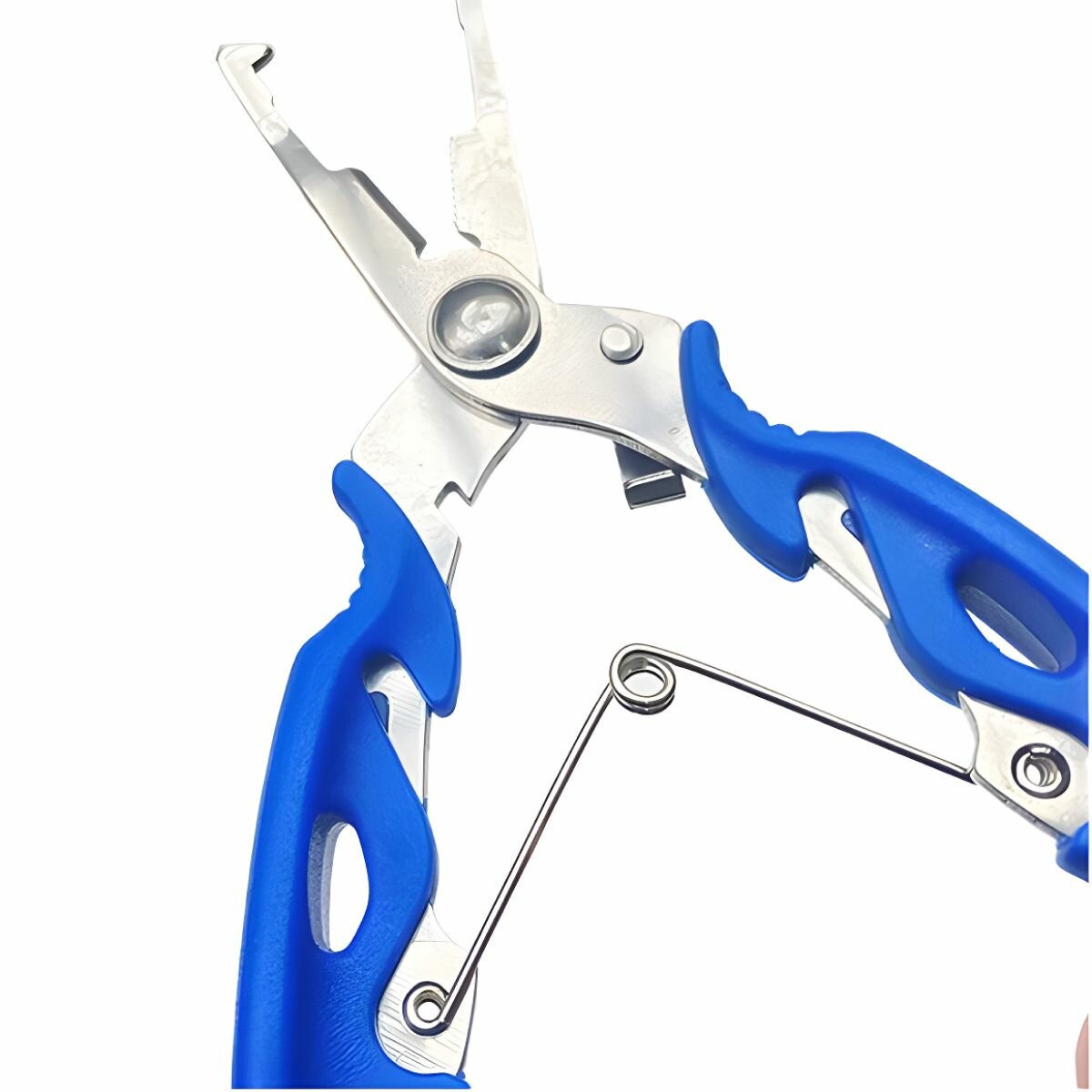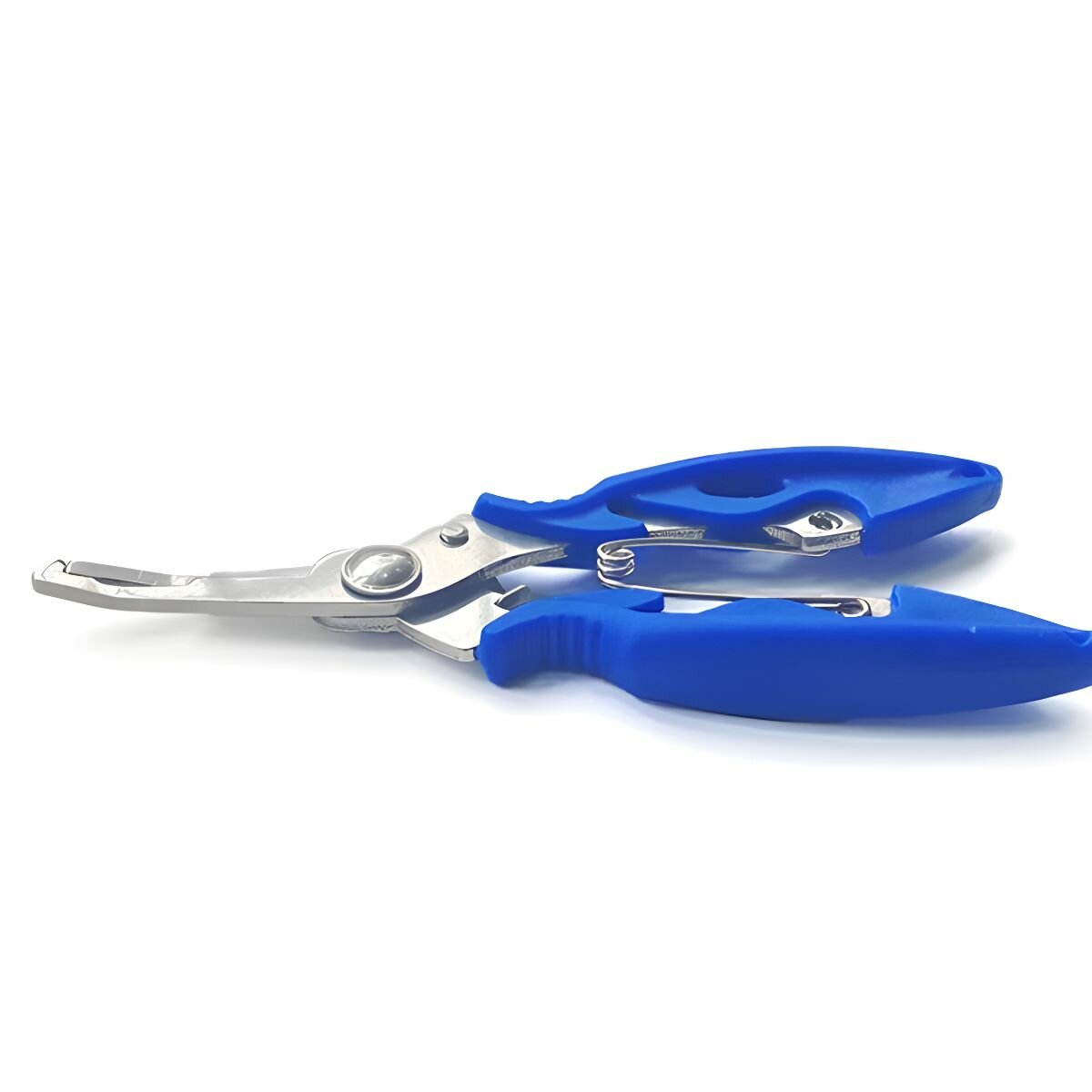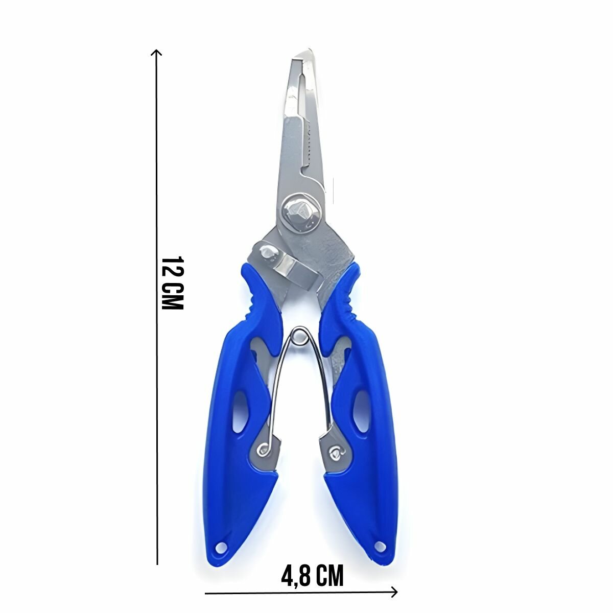 Щипцы рыболовные универсальные для рыбалки с чехлом, для разжимания заводных колец, ножницы рыболовные для лески и плетенки 12,5 см синий