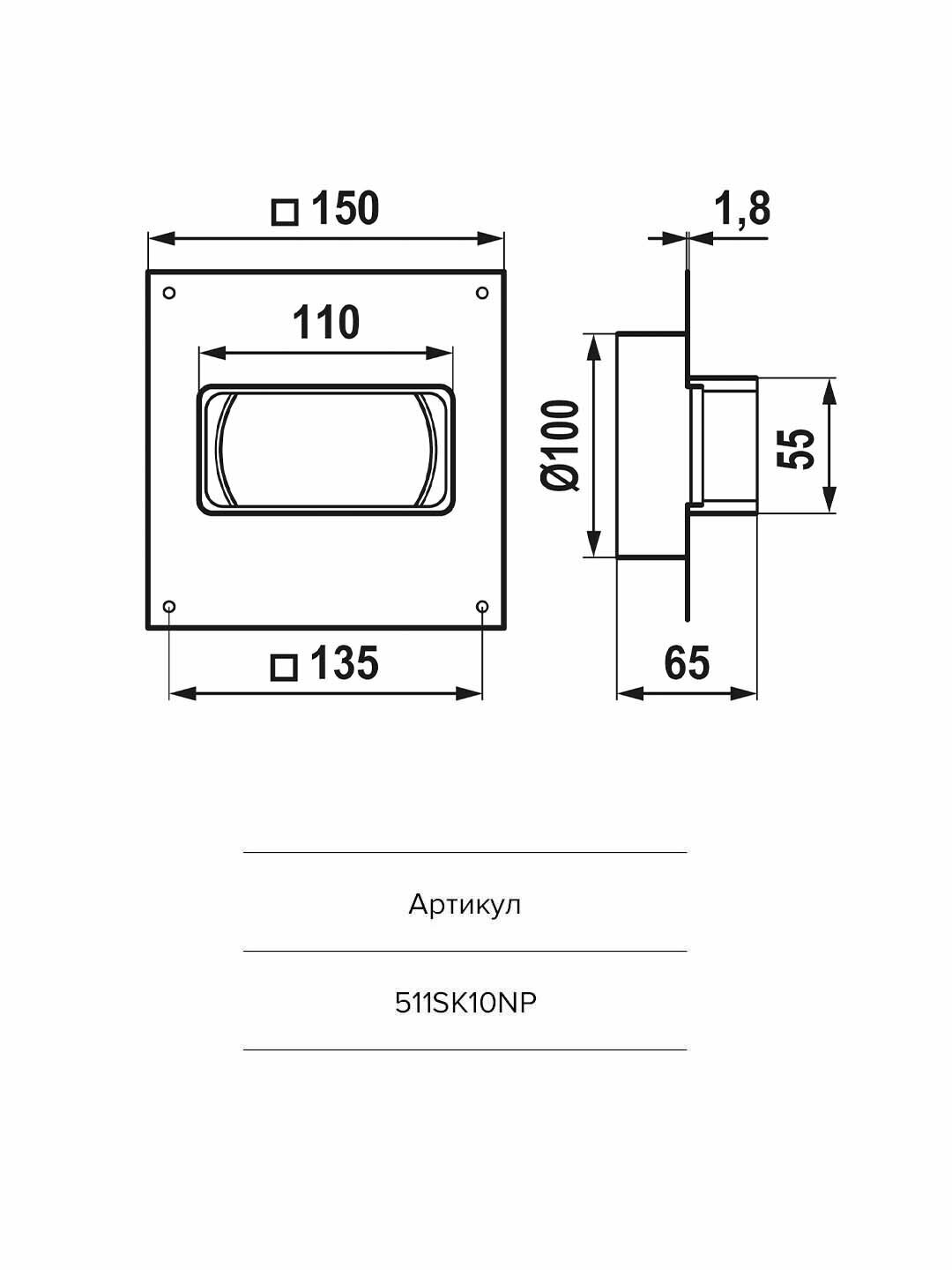 Соединитель круглых каналов с прямоугольными с накладной пластиной ERA 511SK10NP, (55х110 мм/100 мм)