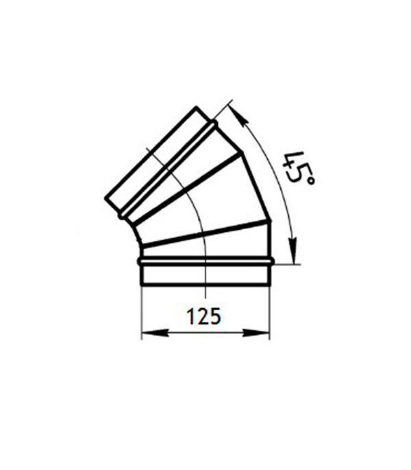 Отвод для круглых воздуховодов d125 мм 45°, оцинкованная сталь