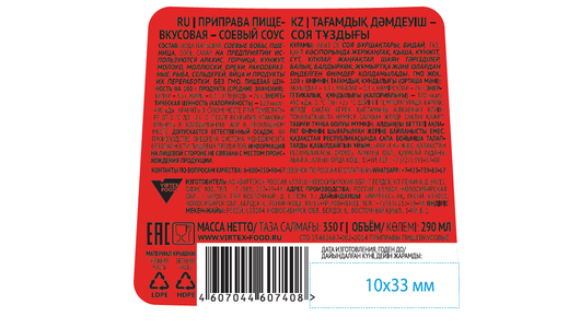 | Состав | вода питьевая, соевые бобы, пшеница, соль, сахар. На предприятии используются арахис, горчица, кунжут, молоко, моллюски, орехи, ракообразные, рыба, сельдерей, яйца и продукты их переработки. |