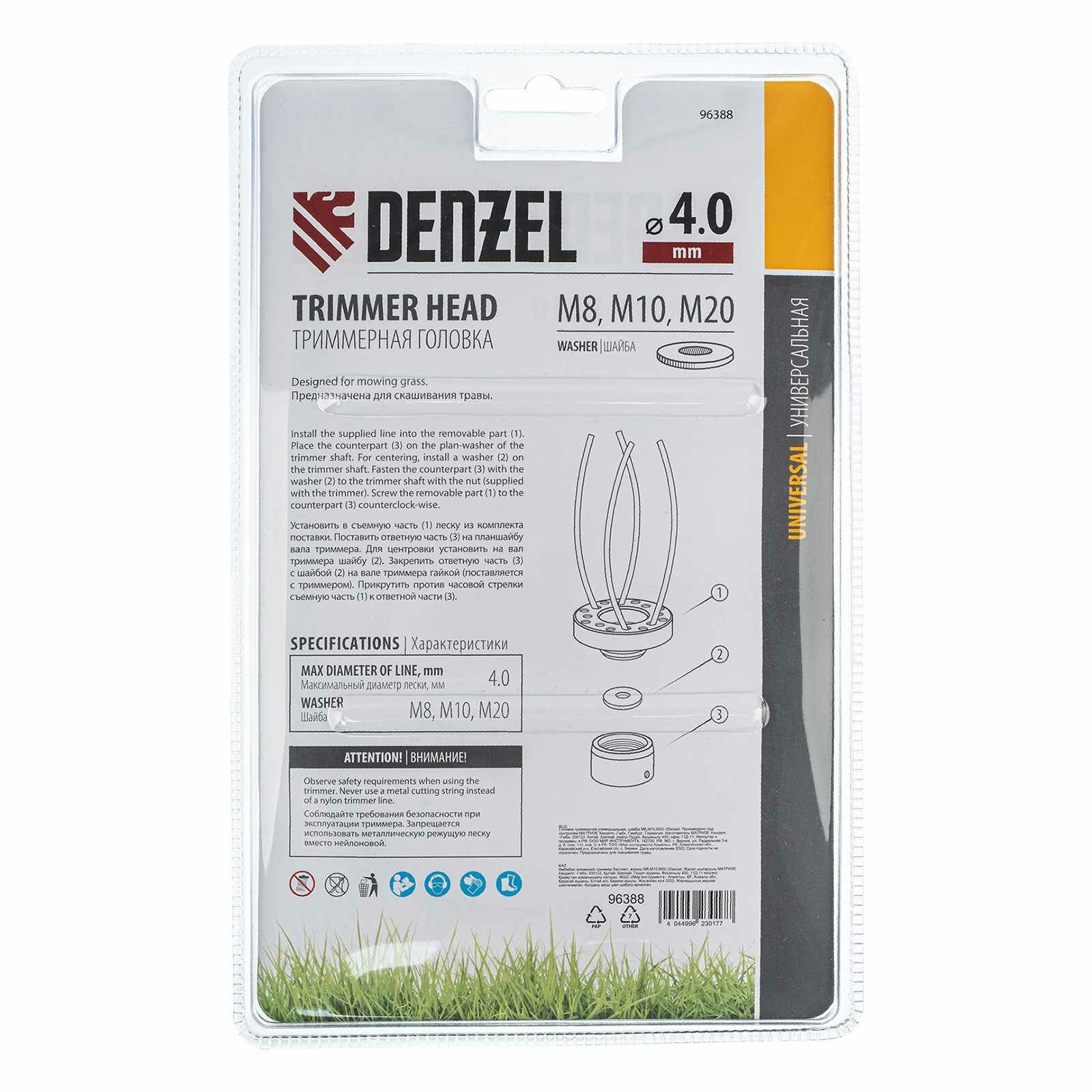 Головка триммерная универсальная Denzel шайба М8, М10, М20 96388 интересное: