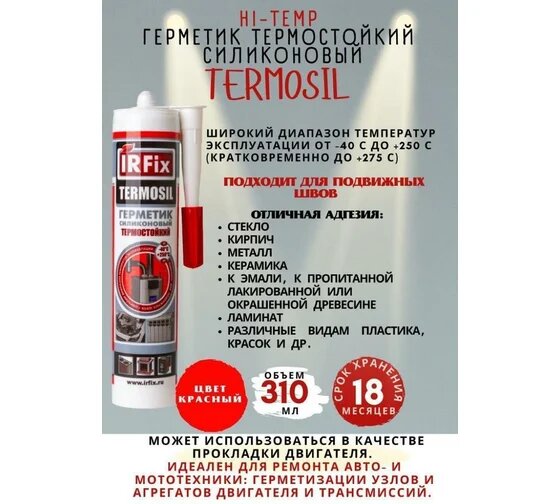 Irfix TERMOSIL Высокотемпературный силиконовый герметик (красный, 310 мл) интересное: