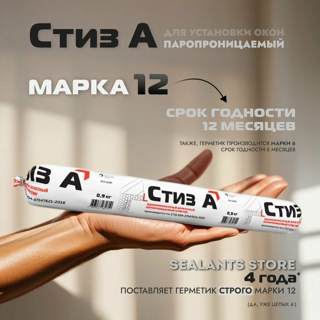 Герметик стиз А 0,9кг Серый графит, для наружного слоя монтажного шва