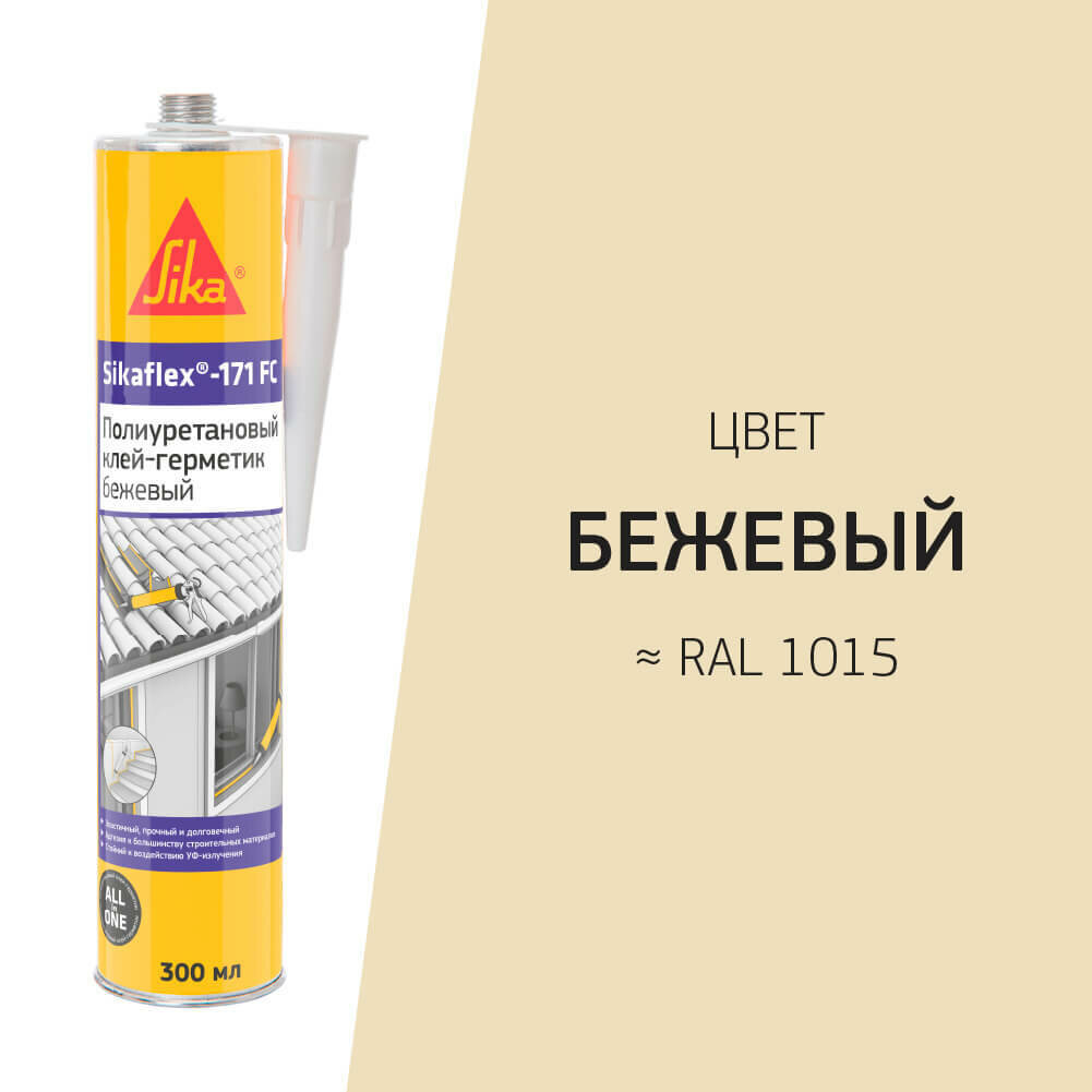 Полиуретановый эластичный универсальный герметик Sika Sikaflex-171 FC+, бежевый, 300 мл