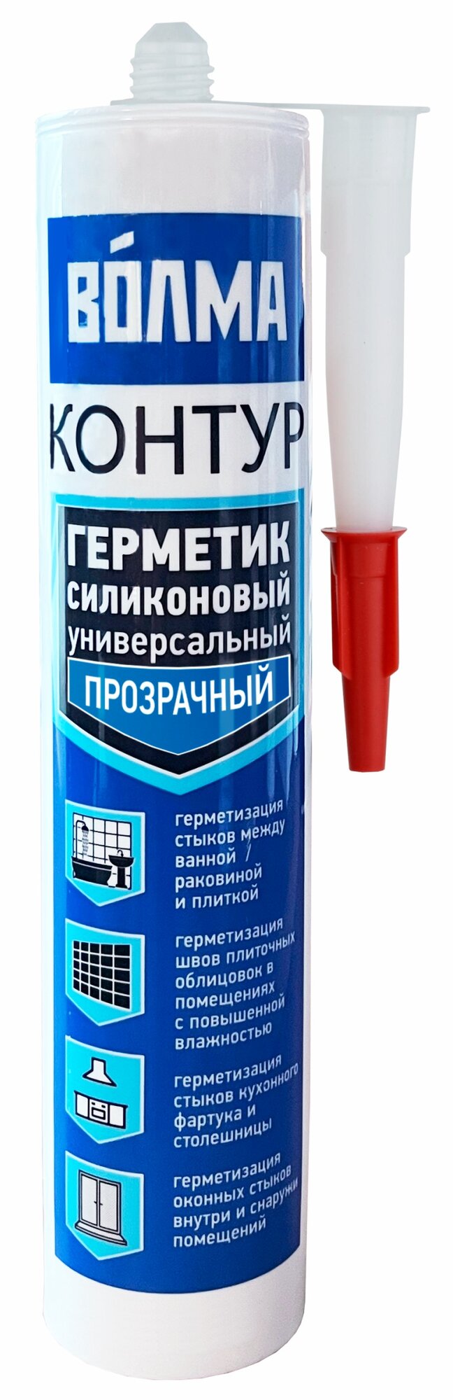 Герметик силиконовый прозрачный волма-контур, герметик для ванной, 290мл