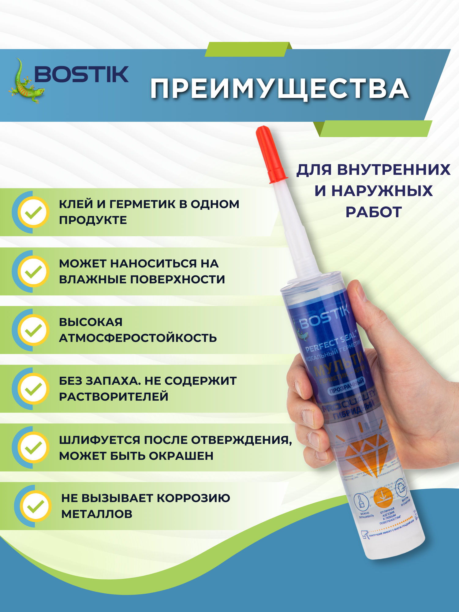 Ниже Вы можете прочитать отзывы на Гибридный клей-герметик Bostik Perfect Seal Мульти прозрачный 300 г, ознакомится с подробными характеристиками, посмотреть интересные обзоры и фотографии на Гибридный клей-герметик Bostik Perfect Seal Мульти прозрачный 300 г.