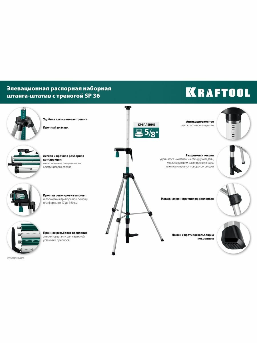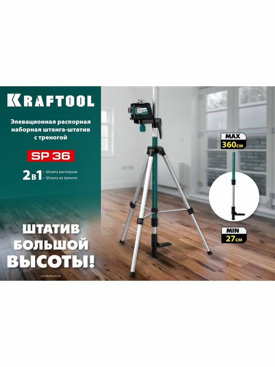 KRAFTOOL SP 36, Элевационная распорная наборная штанга-штатив с треногой (34723)