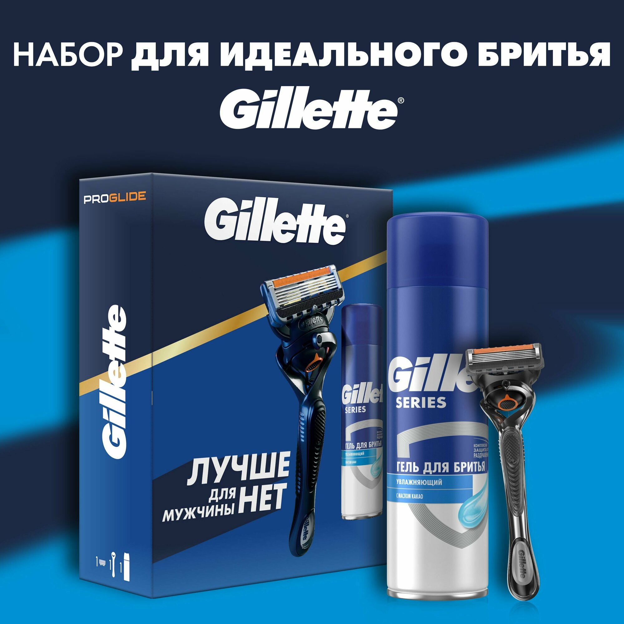Подарочный набор мужской для идеального бритья Gillette ProGlide с Увлажняющим гелем для бритья Gillette Series 200мл