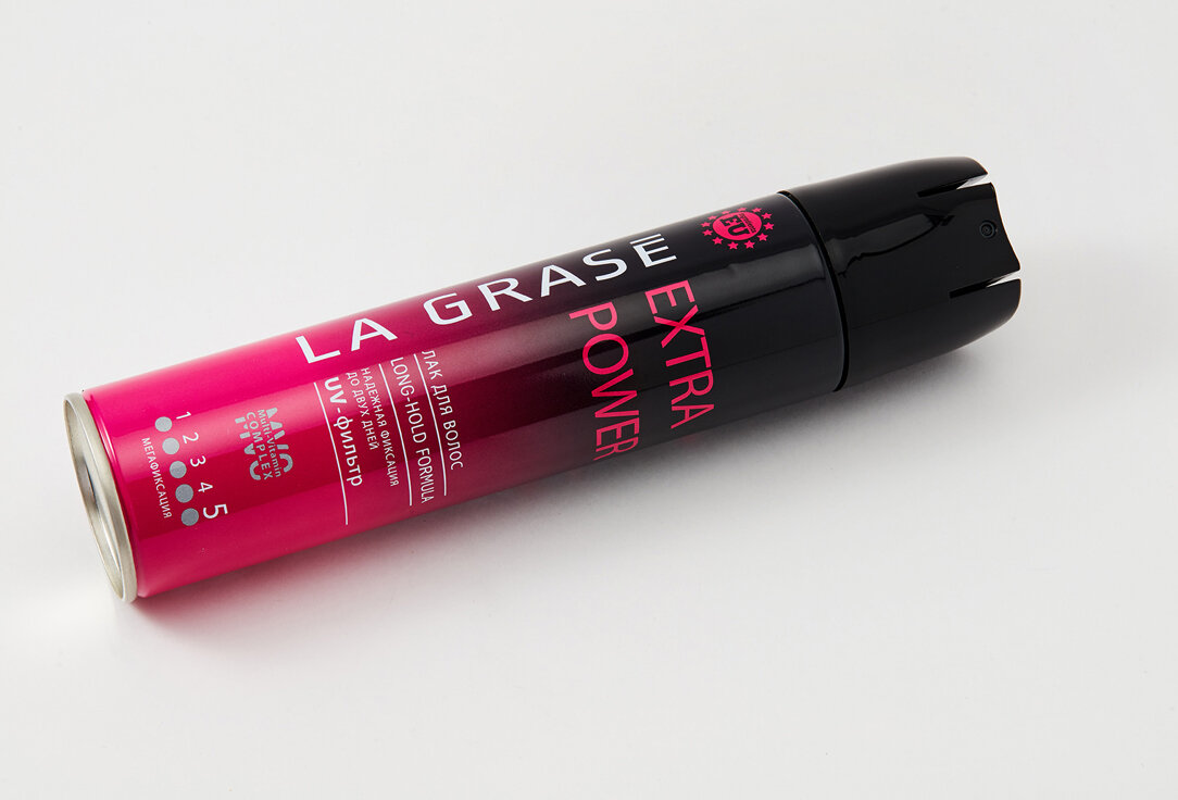 | Способ применения | распылите лак La Grase с расстояния 20-30 см на уложенные в причёску волосы. Для создания большего объёма распылите лак на корни волос, приподнимая отдельные пряди |