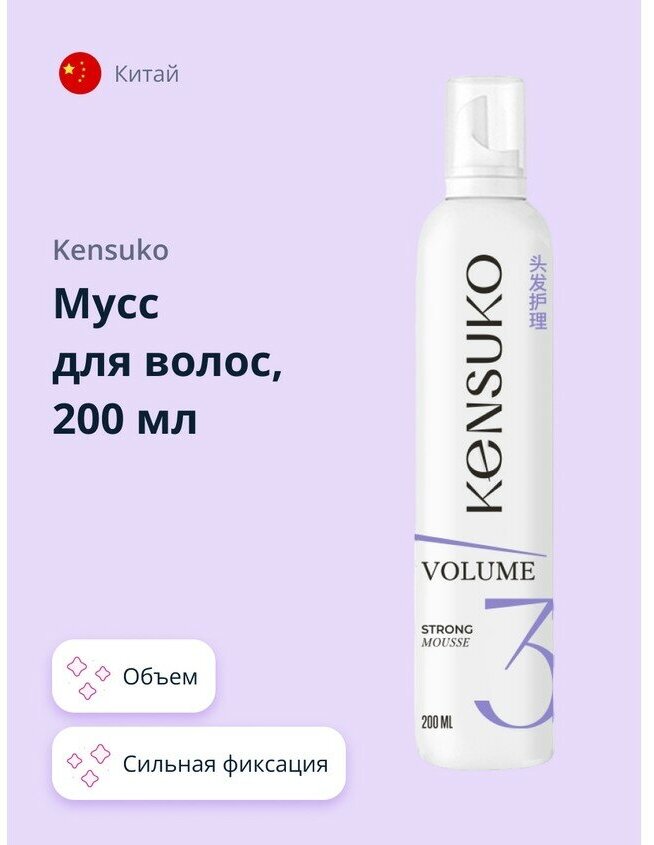 Мусс для укладки волос KENSUKO Объем и сильная фиксация, 200 мл