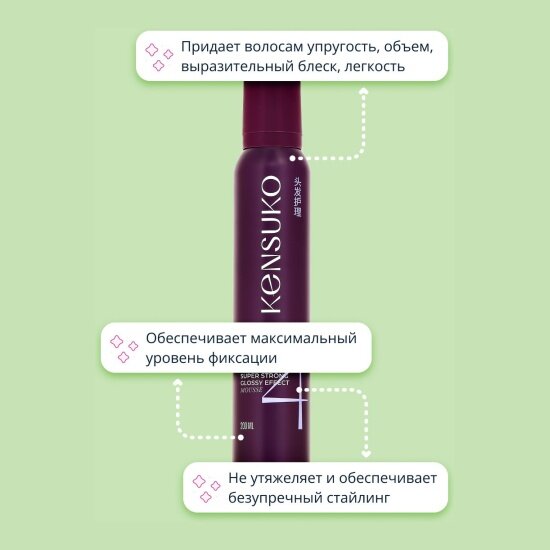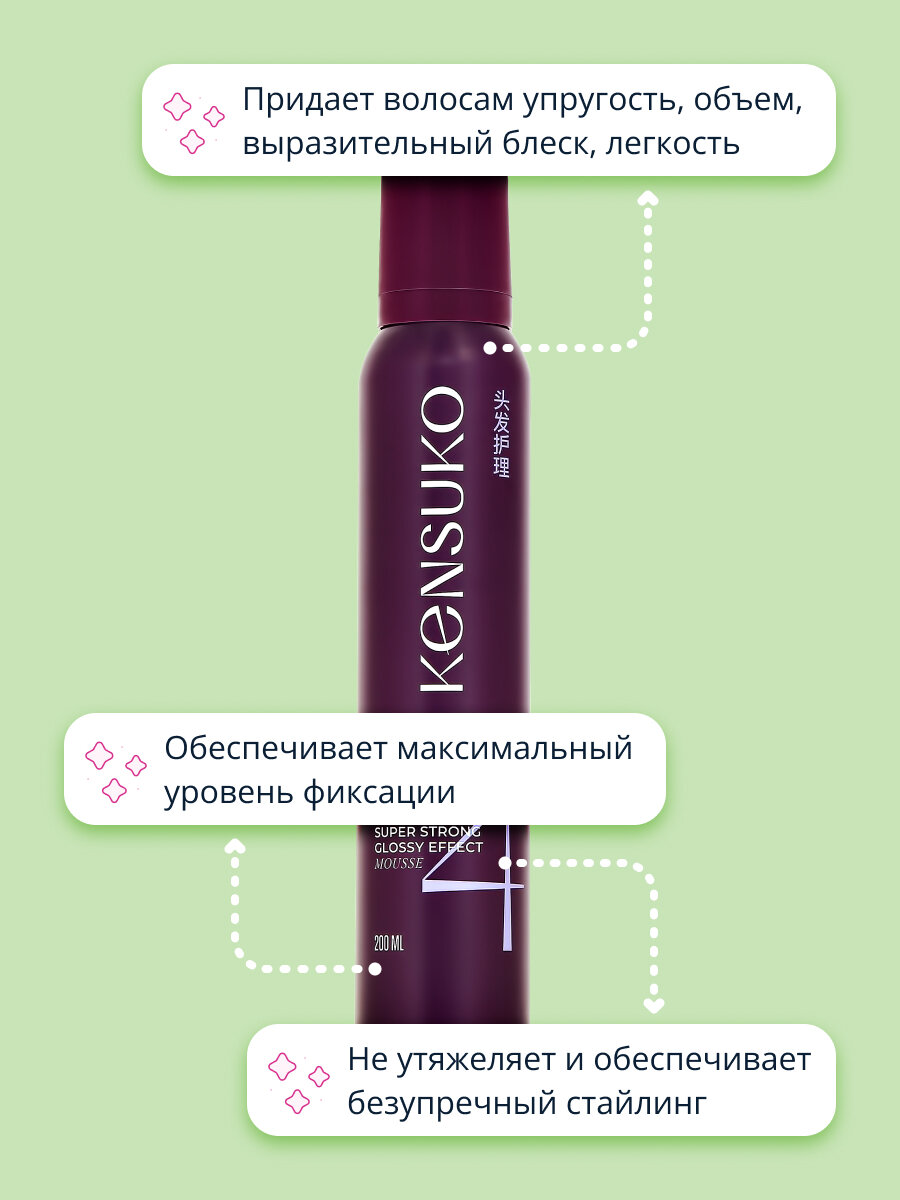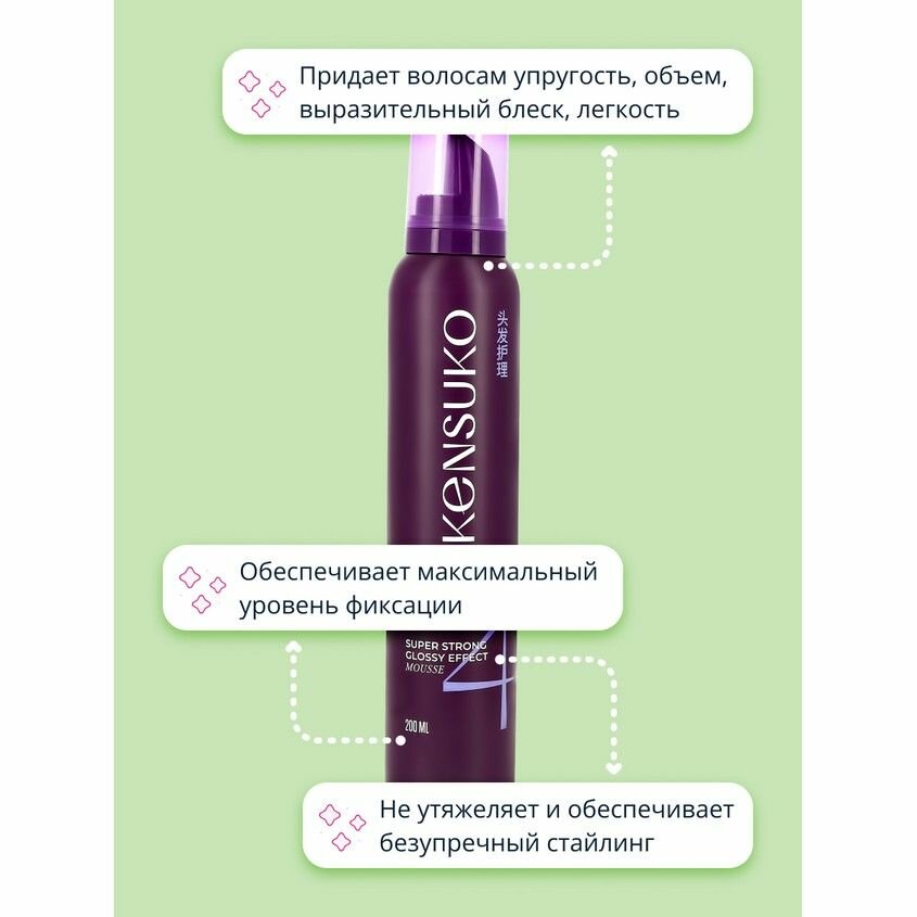 KENSUKO Мусс для волос EXTREME Сверхсильная фиксация (с эффектом блеска) 200 мл интересное: