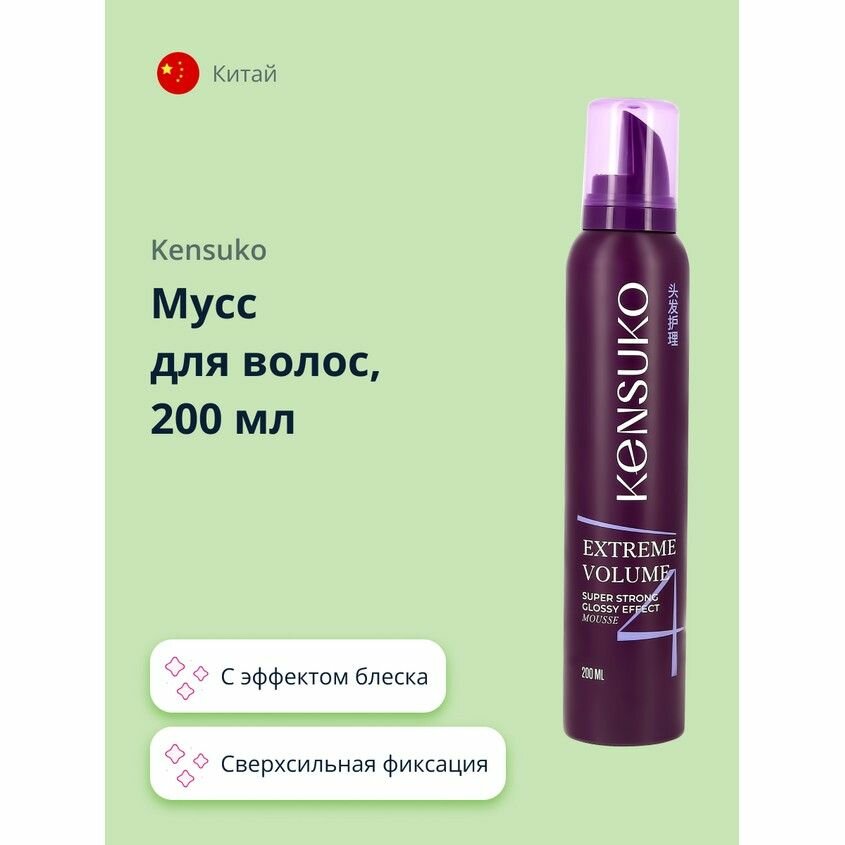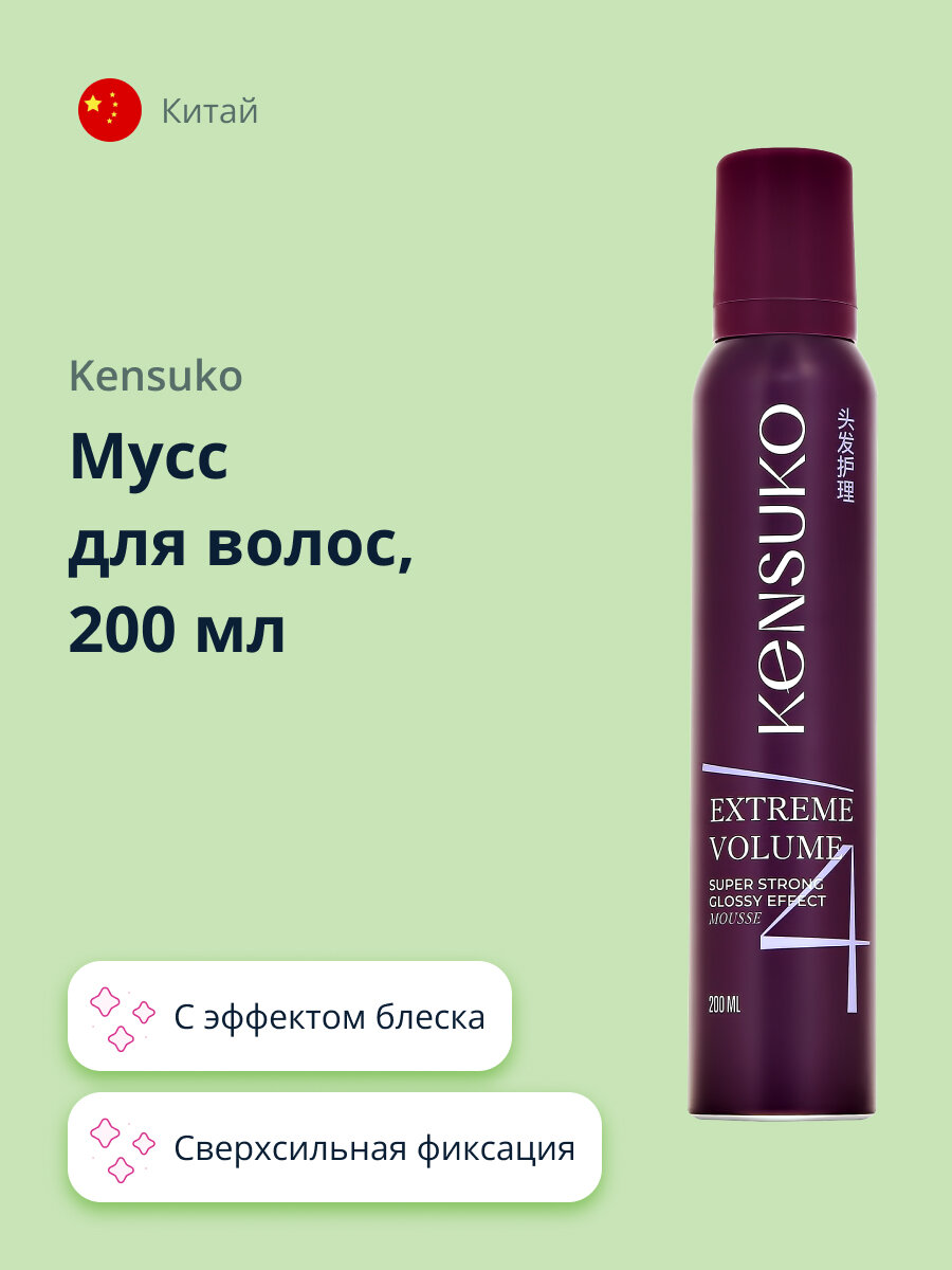 Купить KENSUKO Мусс для волос EXTREME Сверхсильная фиксация (с эффектом блеска) 200 мл
