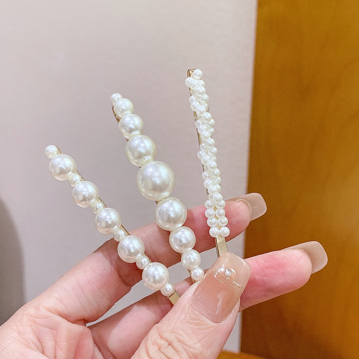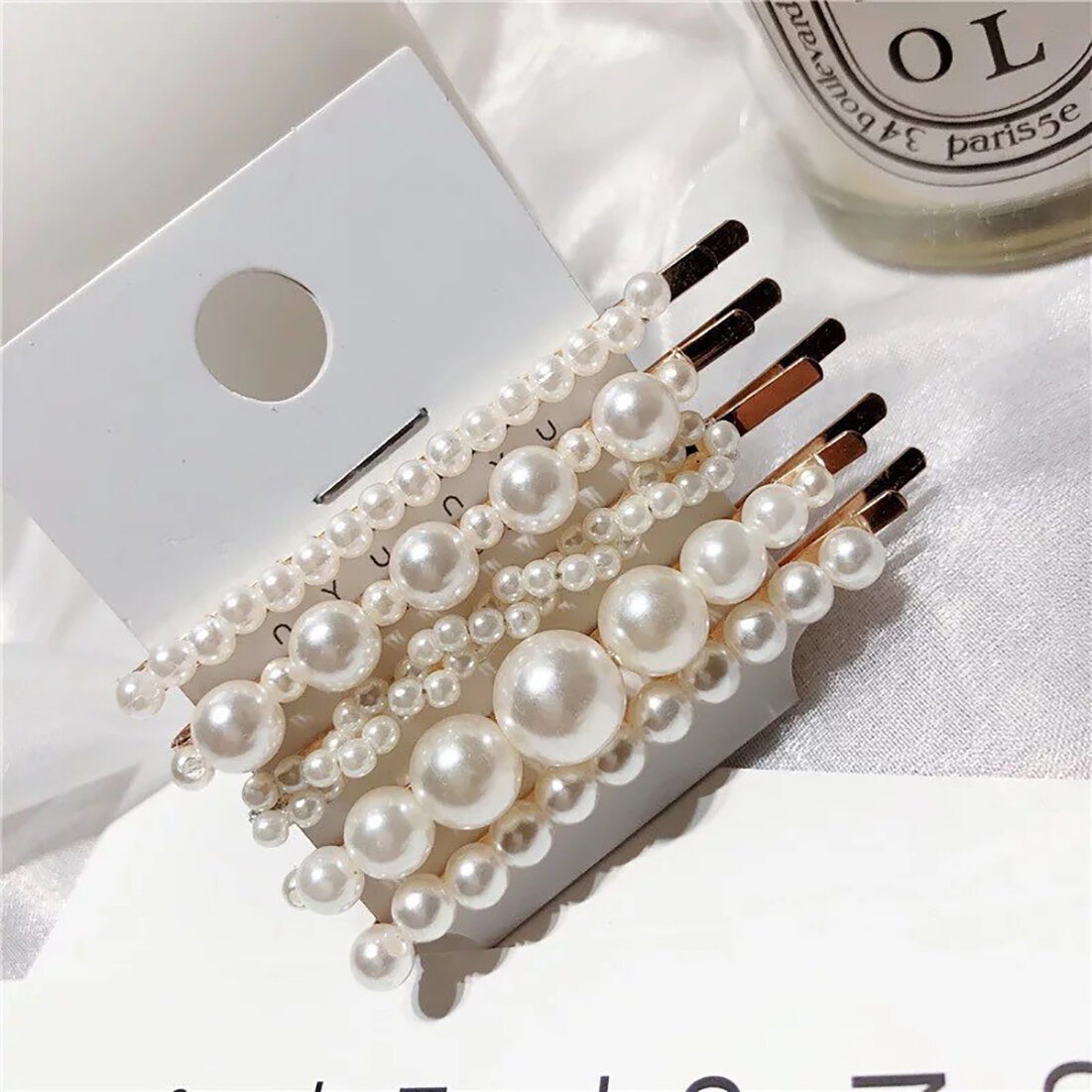 Купить Набор заколок женских, невидимки, длина 7 сантиметров, 5 штук в наборе, цвет жемчужный/золотистый, имитация жемчуга