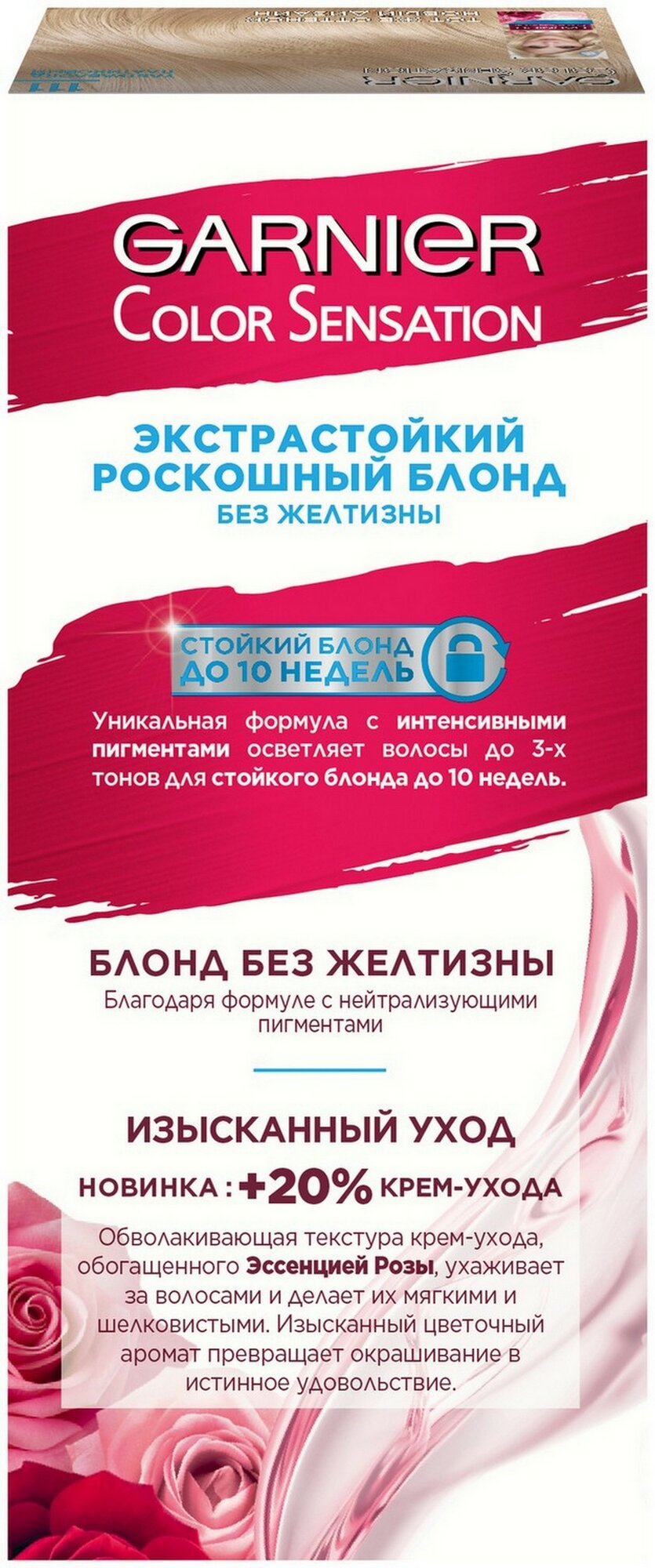 GARNIER Color Sensation Платиновые блонды стойкая крем-краска, 111, Ультра блонд платиновый, 110 мл