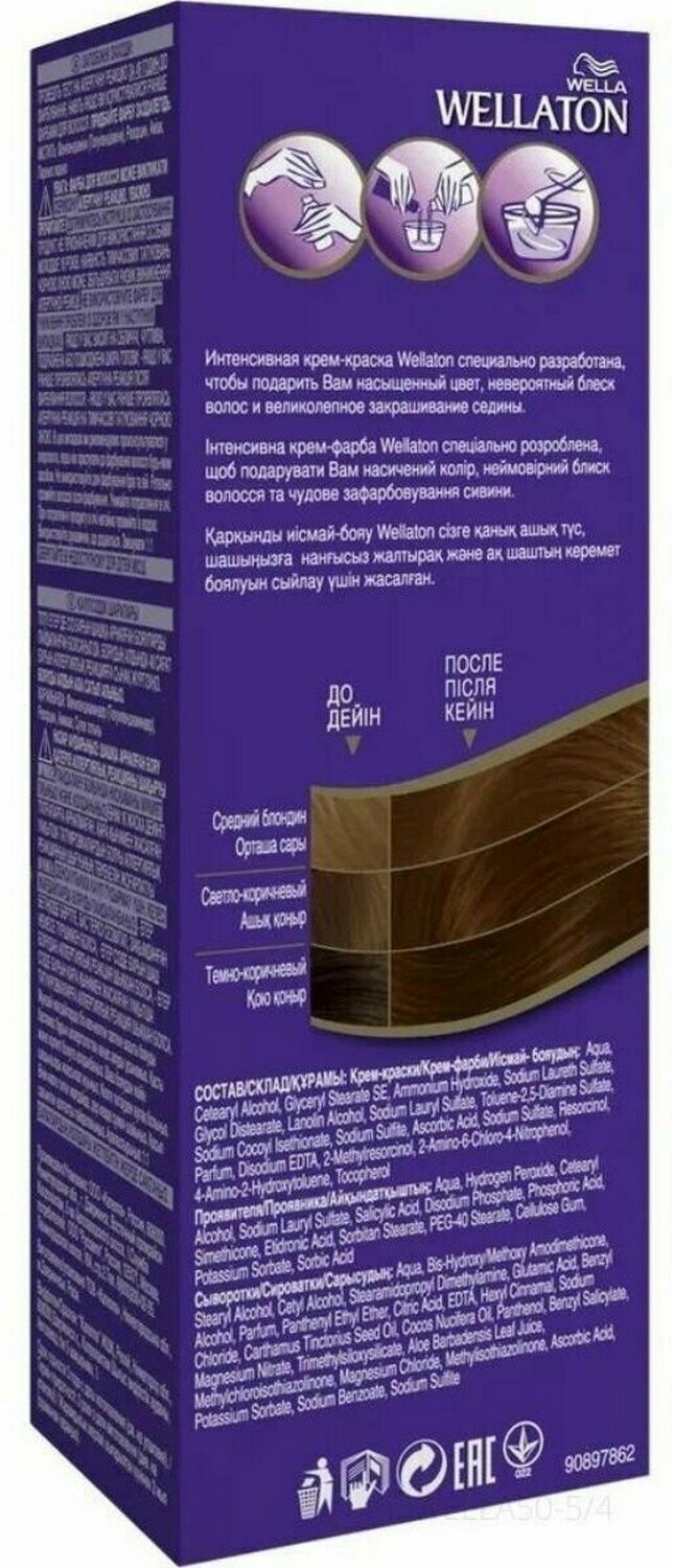 Wella Крем-Краска для волос стойкая Wellaton, 5/4 Каштан
