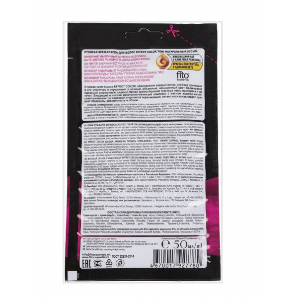 СохранитьFito косметик Effect Сolor стойкая крем-краска для волос, 6.0 натуральный русый, 50 мл интересное: