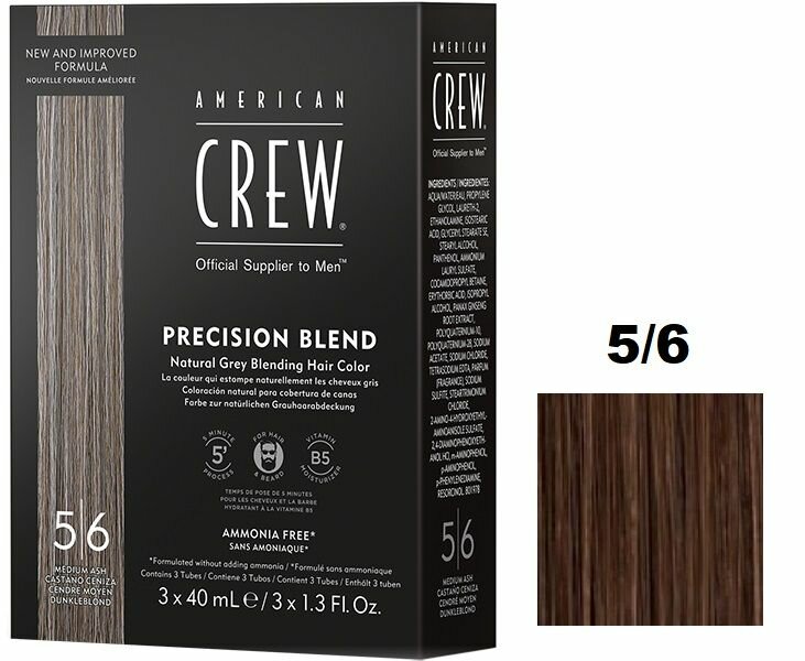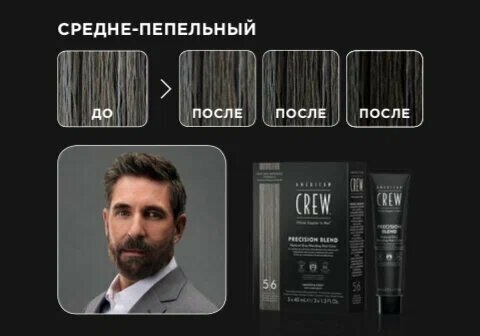 American Crew Precision Blend 5/6 Средний пепельный - Краска для седых волос 3 х 40 мл